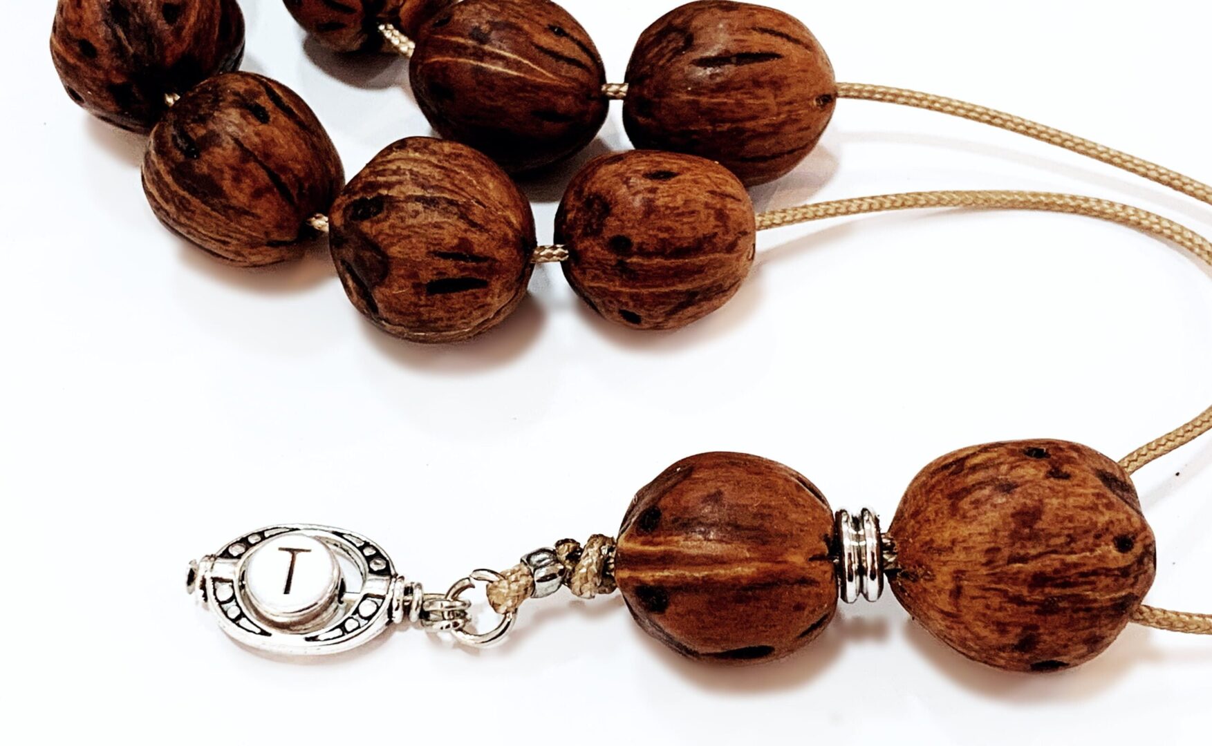 Χειροποίητο κομπολόι από καρπούς μοσχοκάρυδου εμποτισμένους με άρωμα λιβάνι.