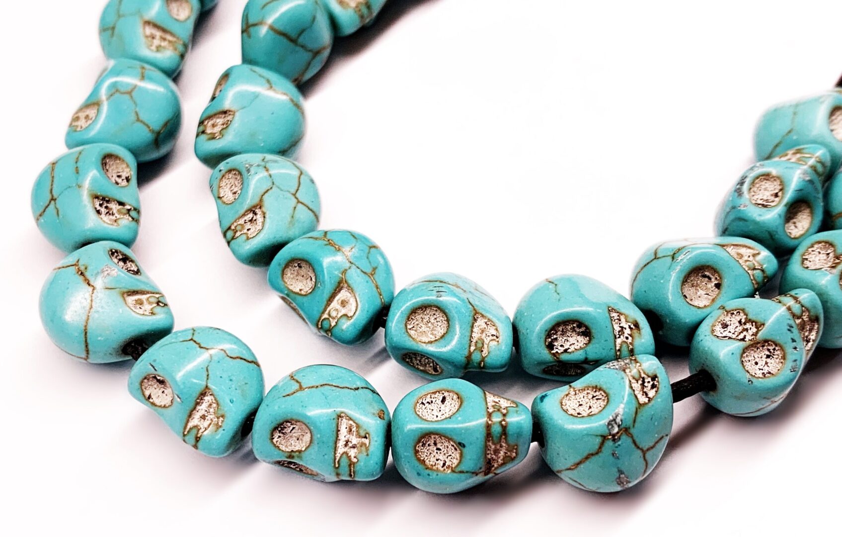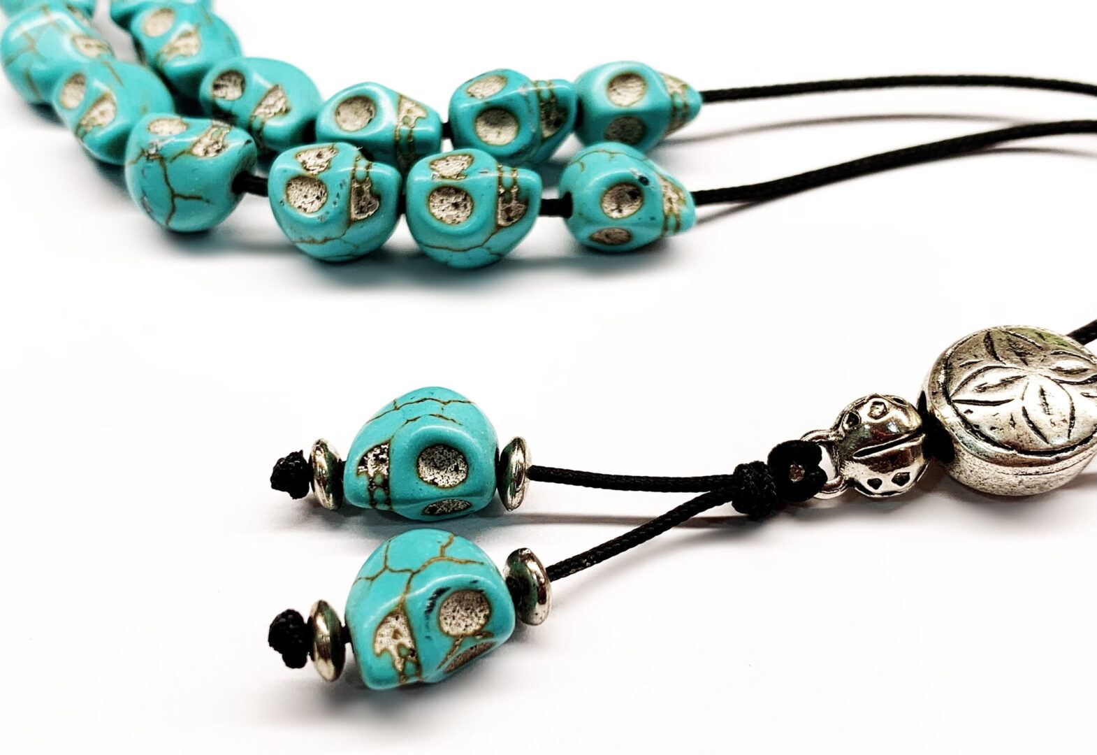 Χειροποίητο κομπολόι από ημιπολύτιμες χάντρες Χαολίτη τυρκουάζ σε σχήμα νεκροκεφαλή.