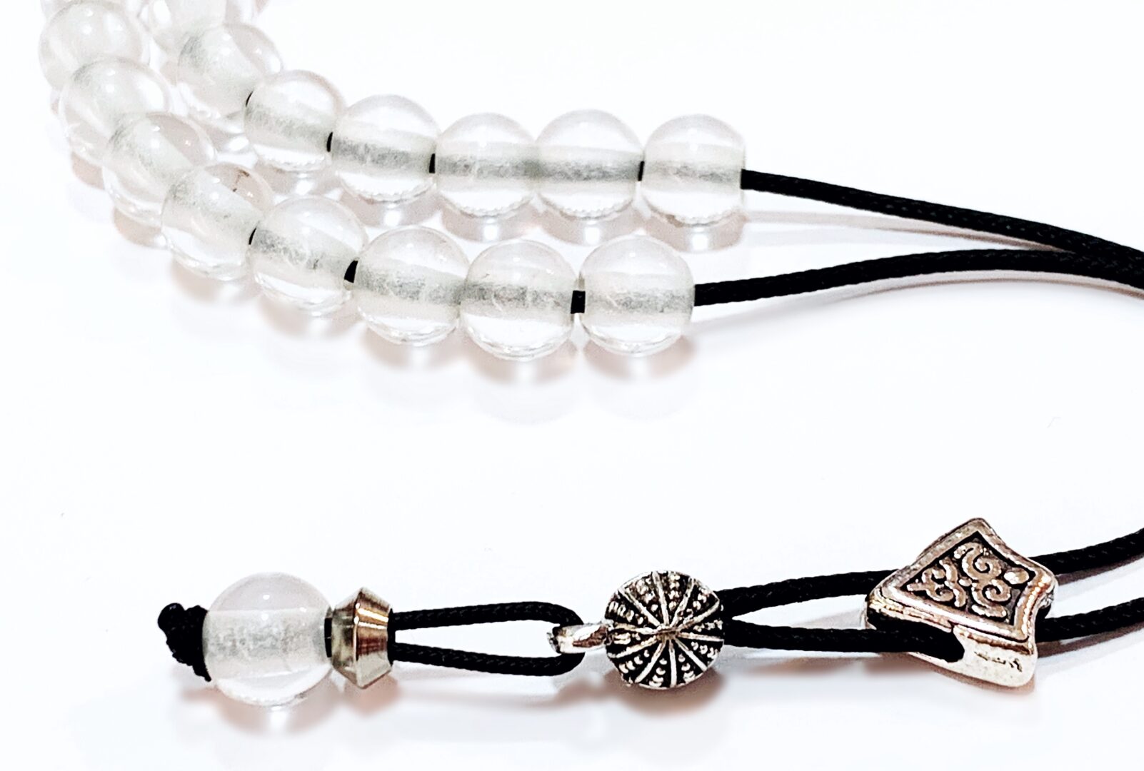 Χειροποίητο κομπολόι από ημιπολύτιμες χάντρες  λευκού Χαλαζία quartz  .