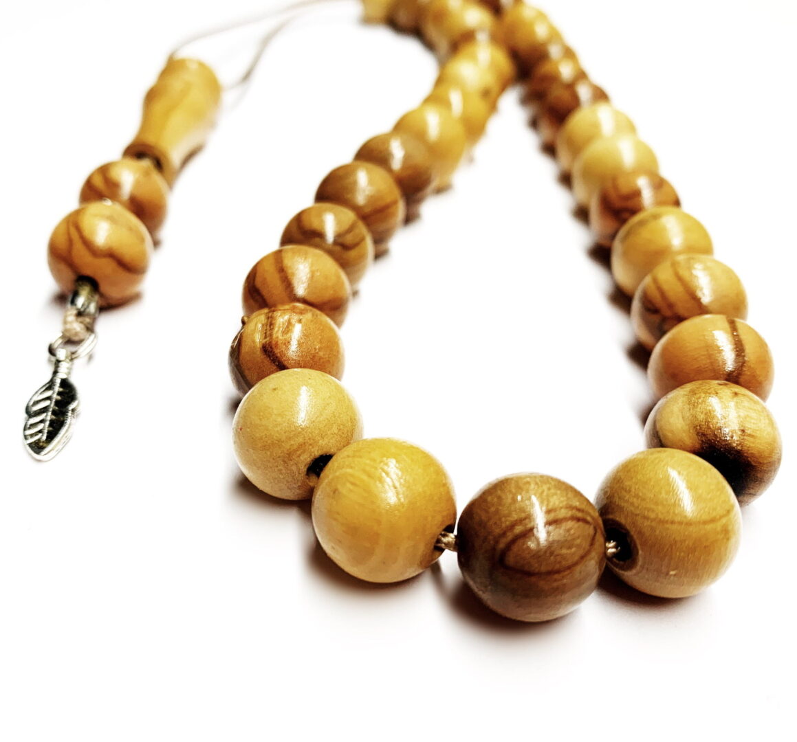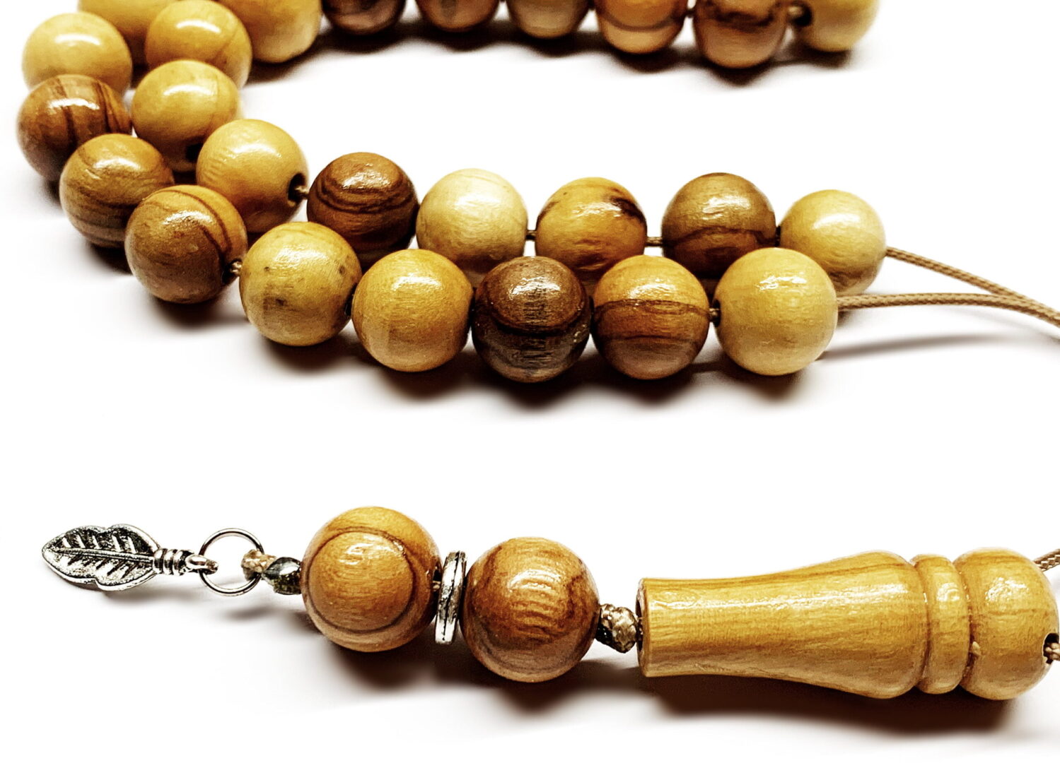 Χειροποίητο κομπολόι από ξύλο ελιάς εισαγωγής σε στρογγυλό σχήμα.