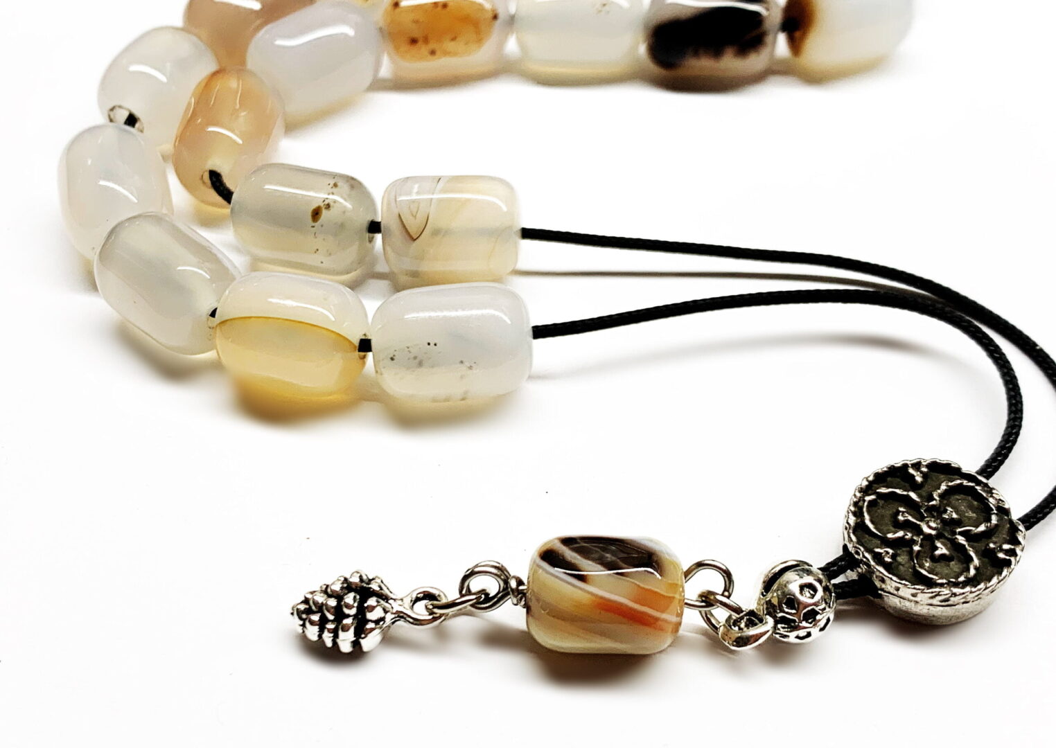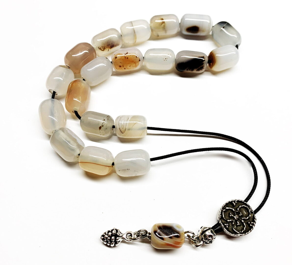 Χειροποίητο κομπολόι από ημιπολύτιμες χάντρες Αχάτη σε σχήμα βαρελάκι.