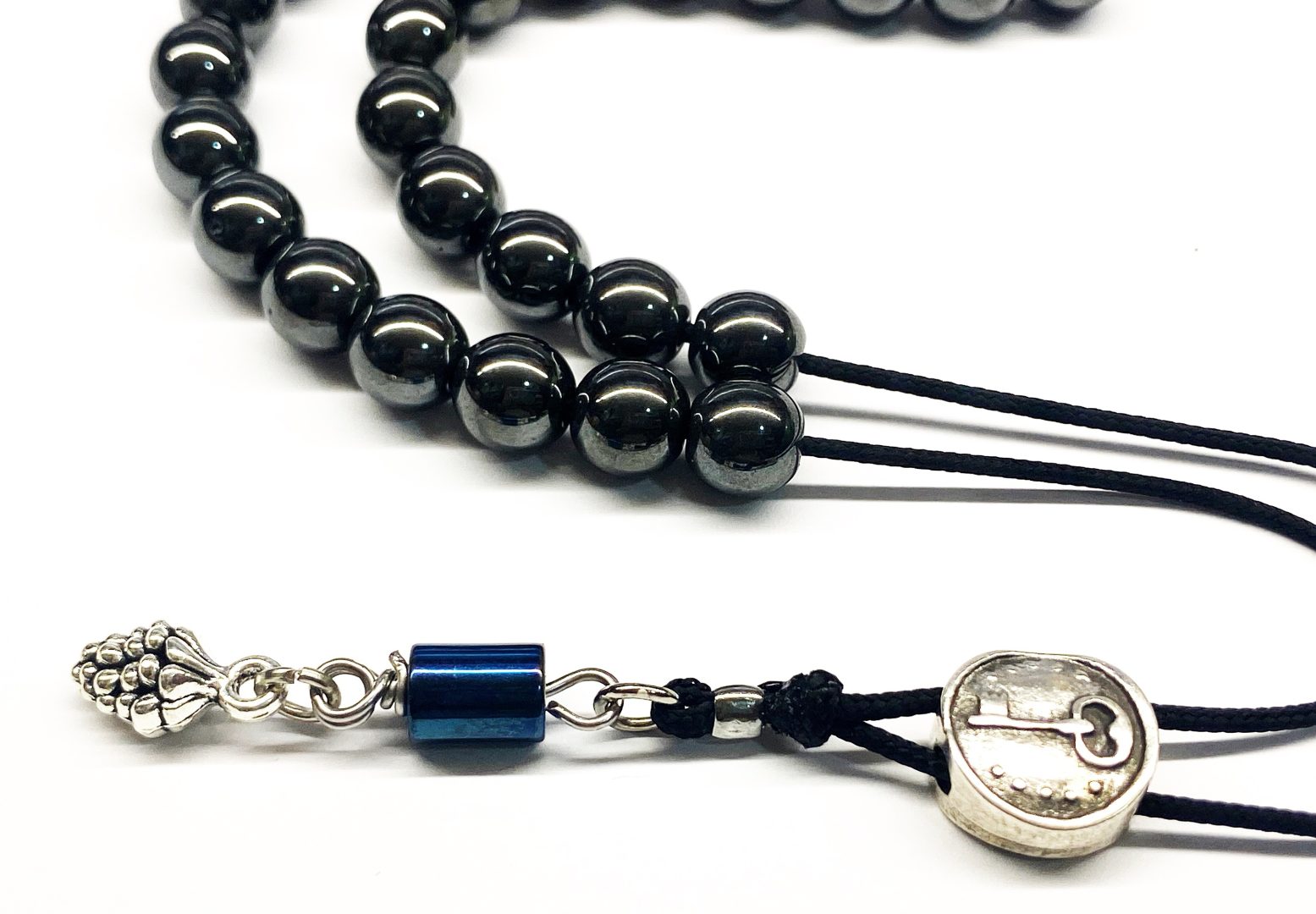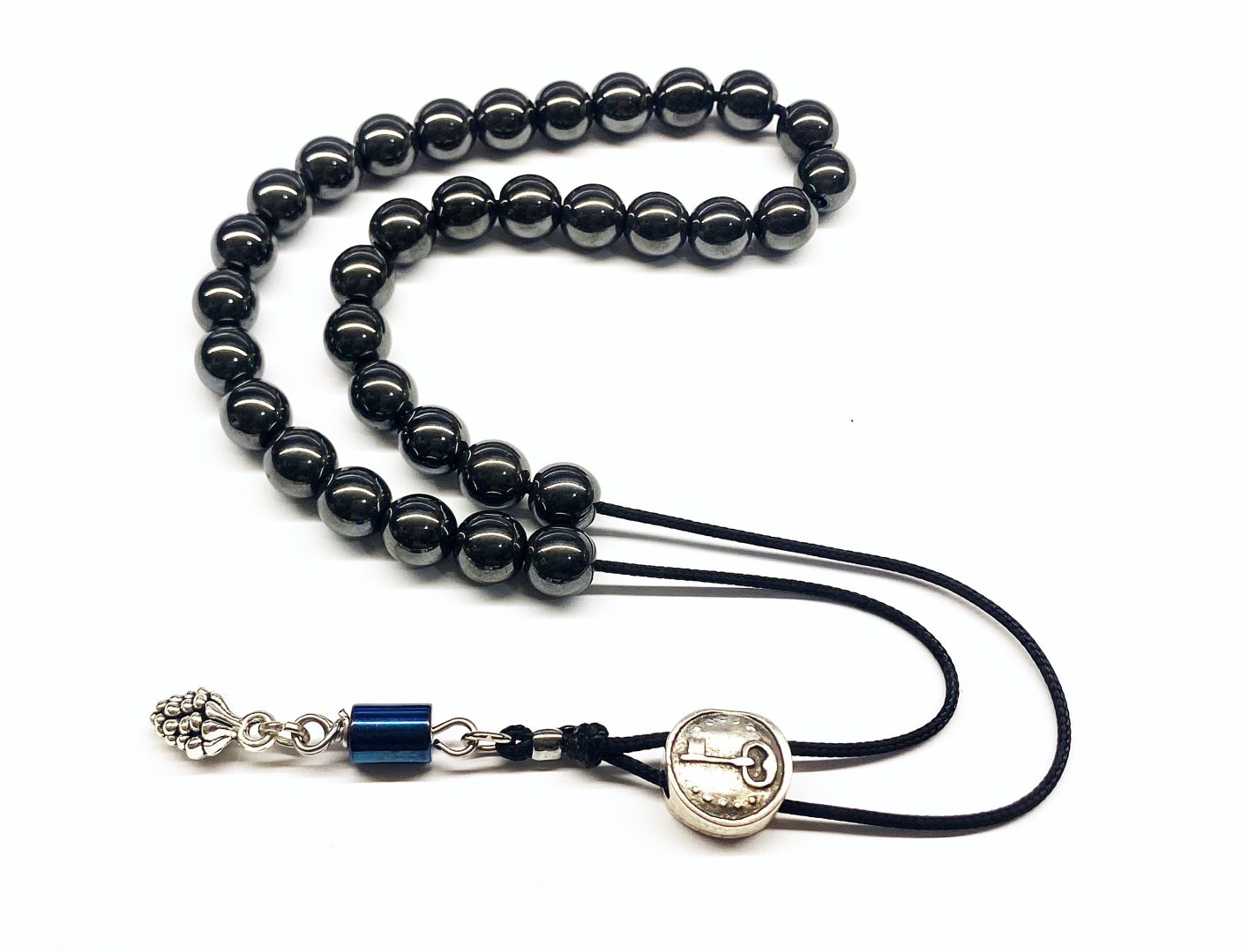 Χειροποίητο κομπολόι από Αιματίτη δεμένο με 33 χάντρες και μεταλλικό θύρεο.