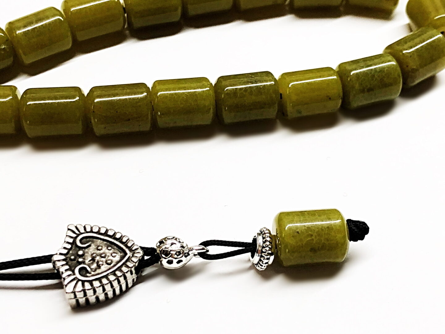 Χειροποίητο κομπολόι από ημιπολύτιμες χάντρες πράσινου Νεφρίτη σε σχήμα βαρελάκι .