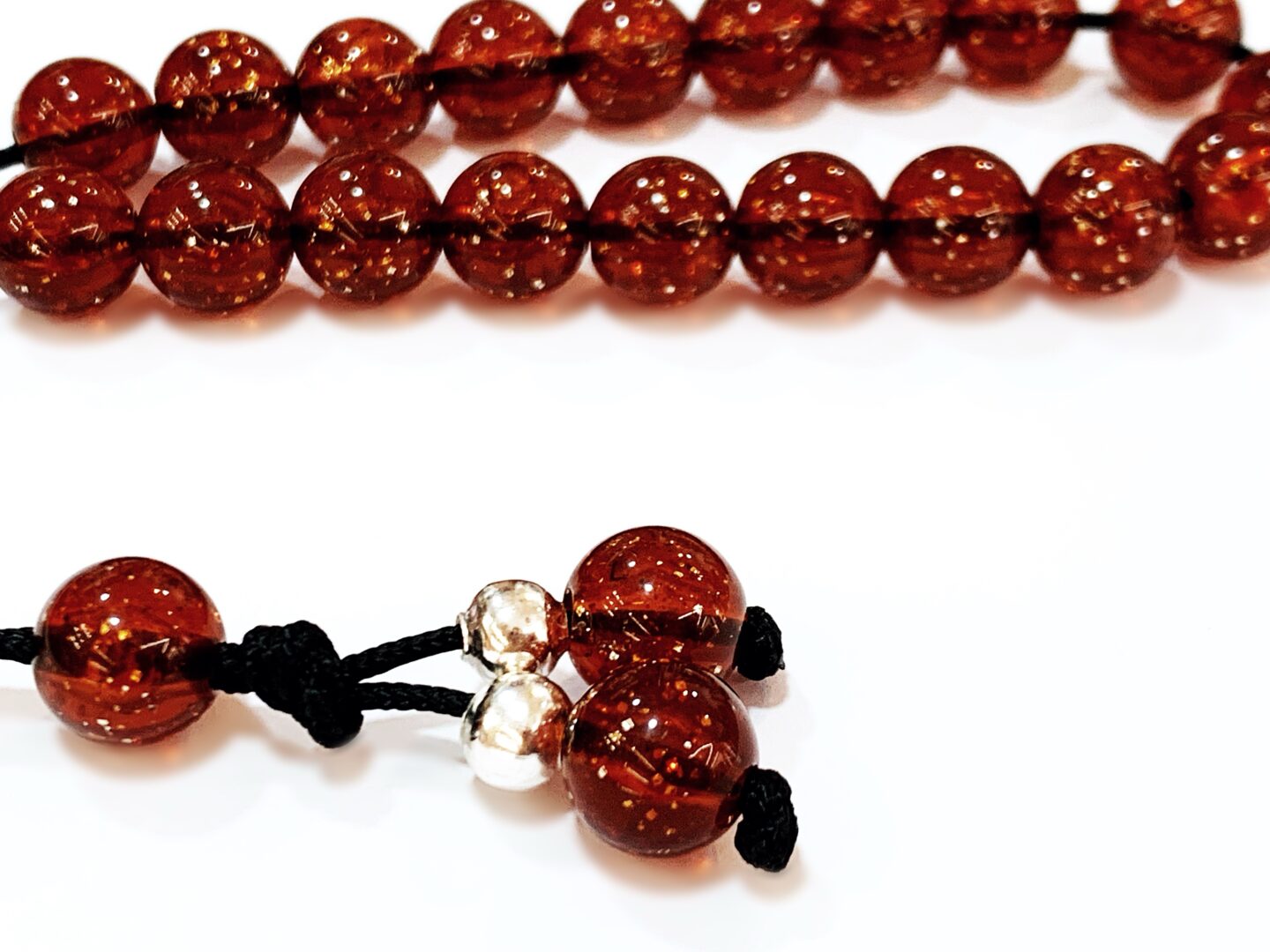 Χειροποίητο κομπολόι από ρητίνη μέλι με χρυσόσκονη ,δεμένο με 19 + 3 χάντρες στο τελείωμα.