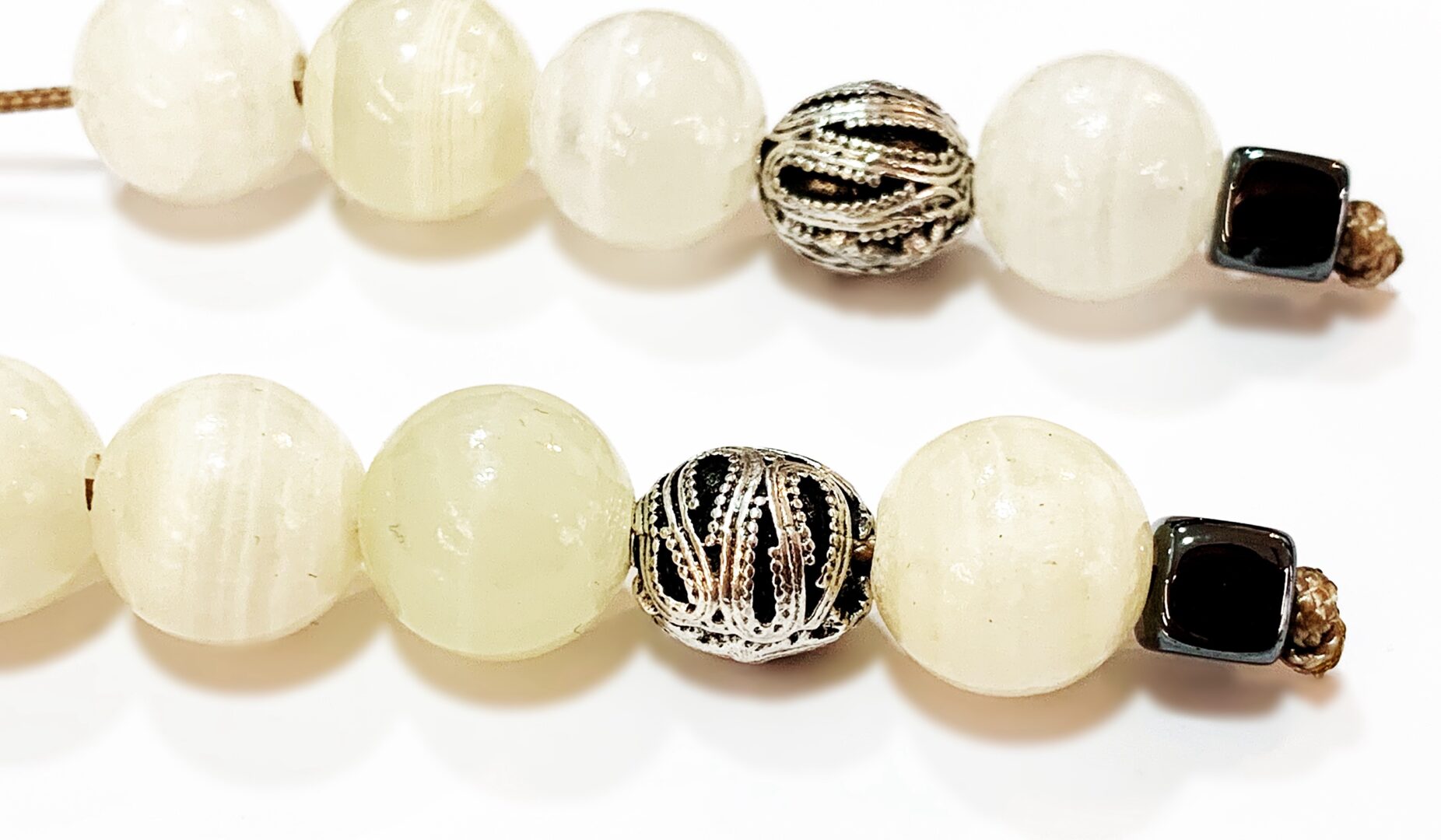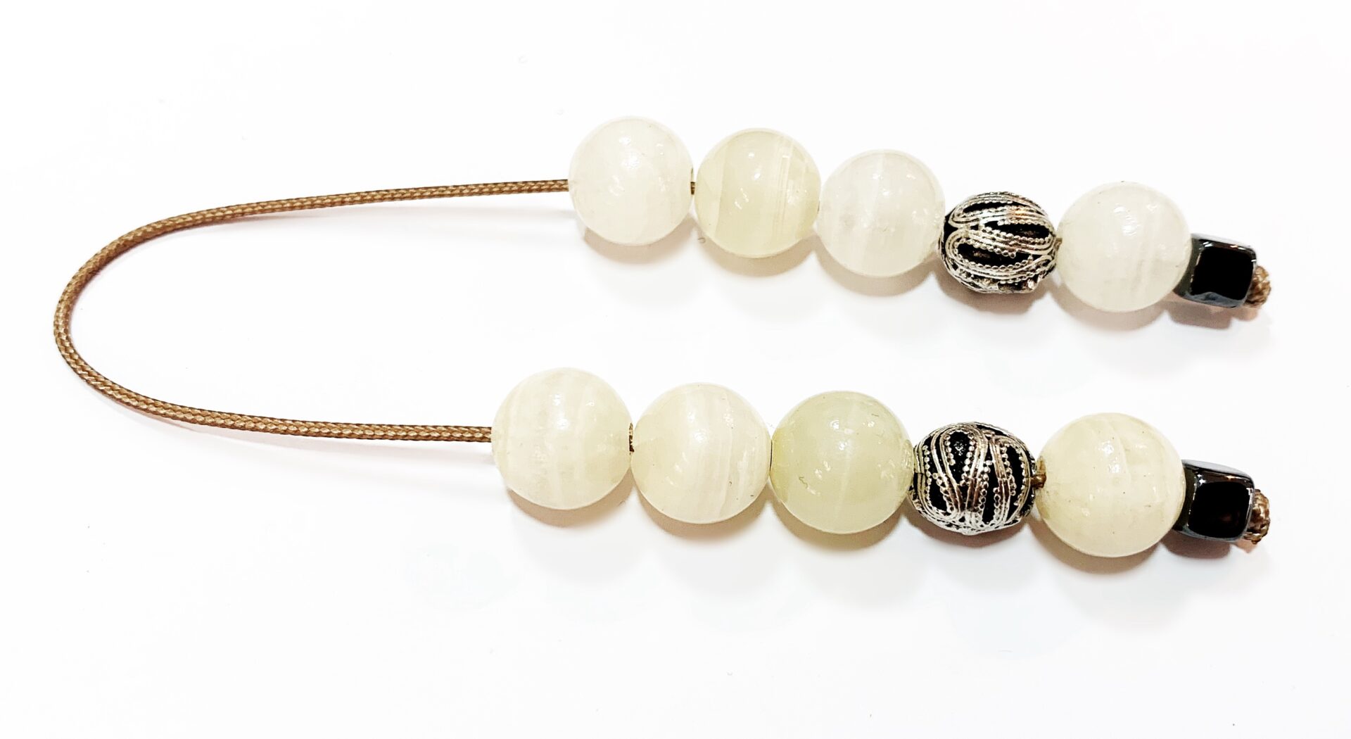 Χειροποίητο μπεγλέρι από ημιπολύτιμο λίθο Όνυχα και Αιματίτη σε σχήμα στρογγυλό.