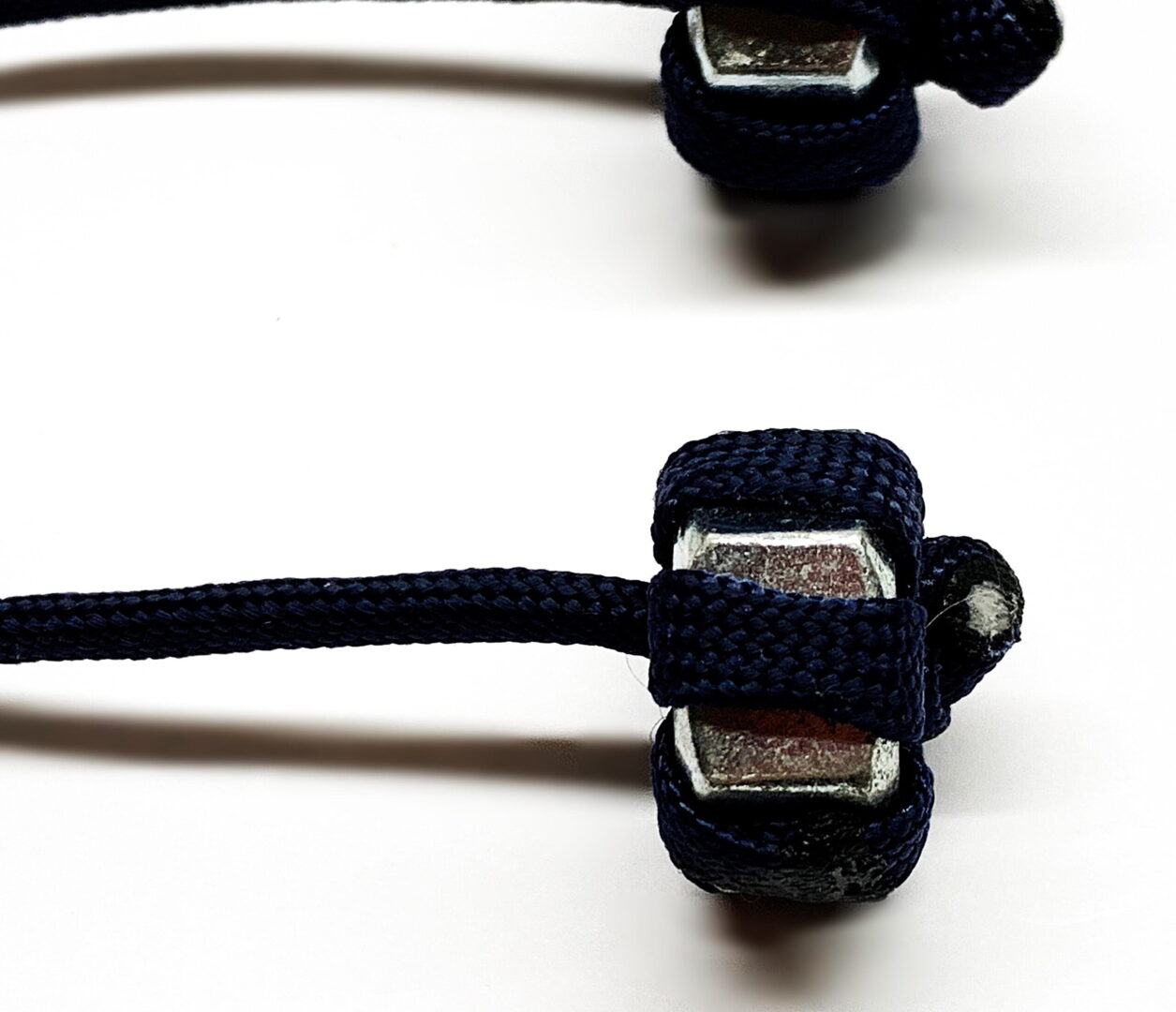 Χειροποίητο μπεγλέρι από κορδόνι paracord δεμένο με δύο παξιμάδια γαλβάνιζε .