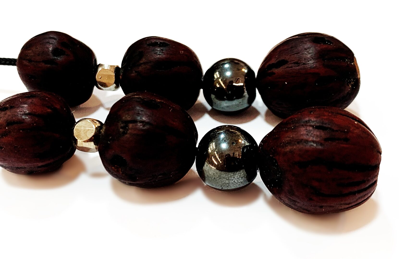 Δεμένο με 6 χάντρες και 2 από αιματίτη .