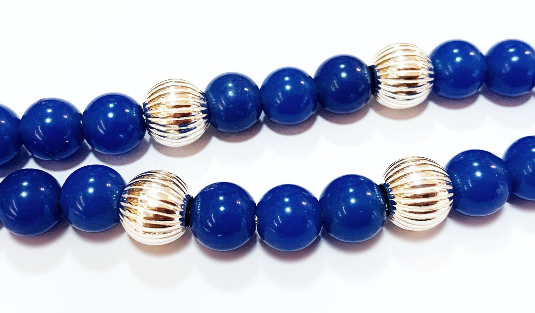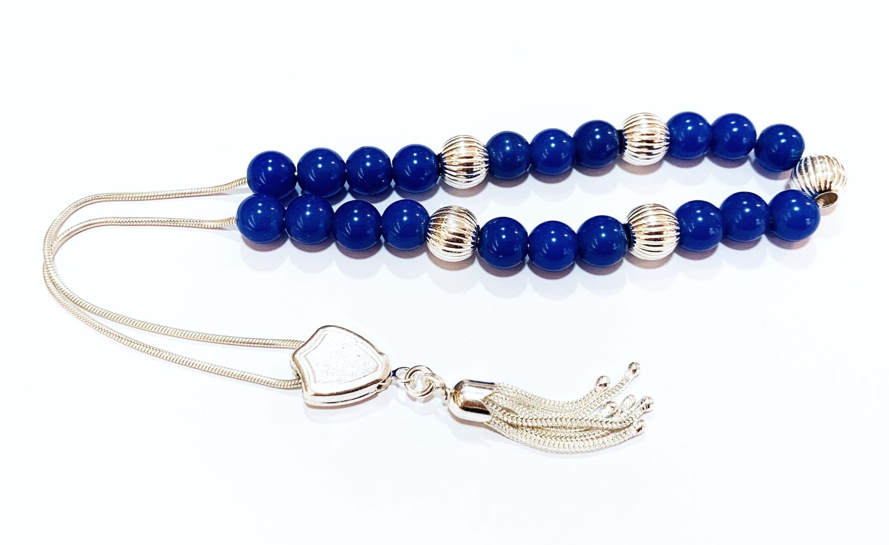 Ασημένιο κομπολόι με ημιπολύτιμες χάντρες από Αχάτη μπλε σε στρογγυλό σχήμα .