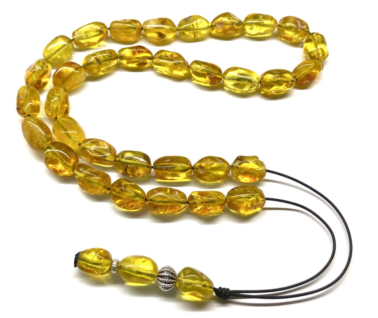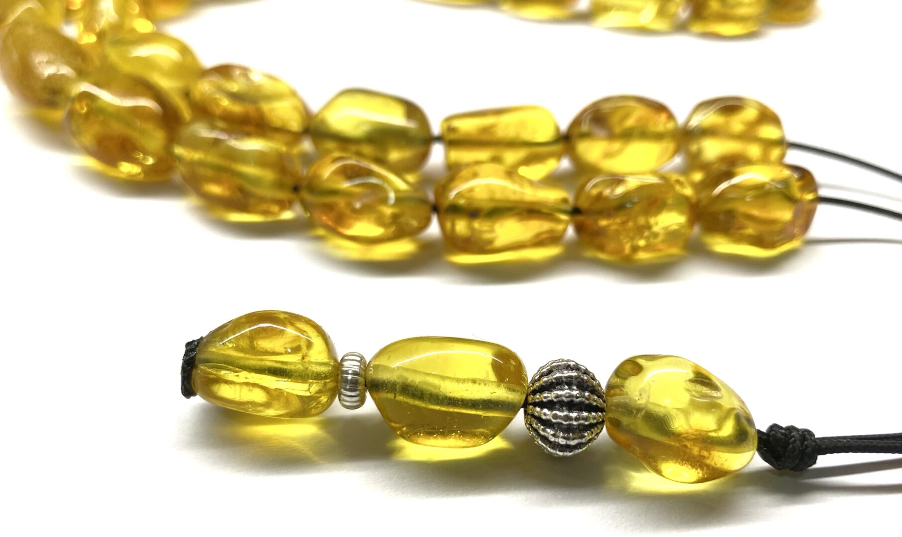 Κομπολόι 33άρι από ατόφιο Κεχριμπάρι Βαλτικής διαυγές βότσαλο AMB 270