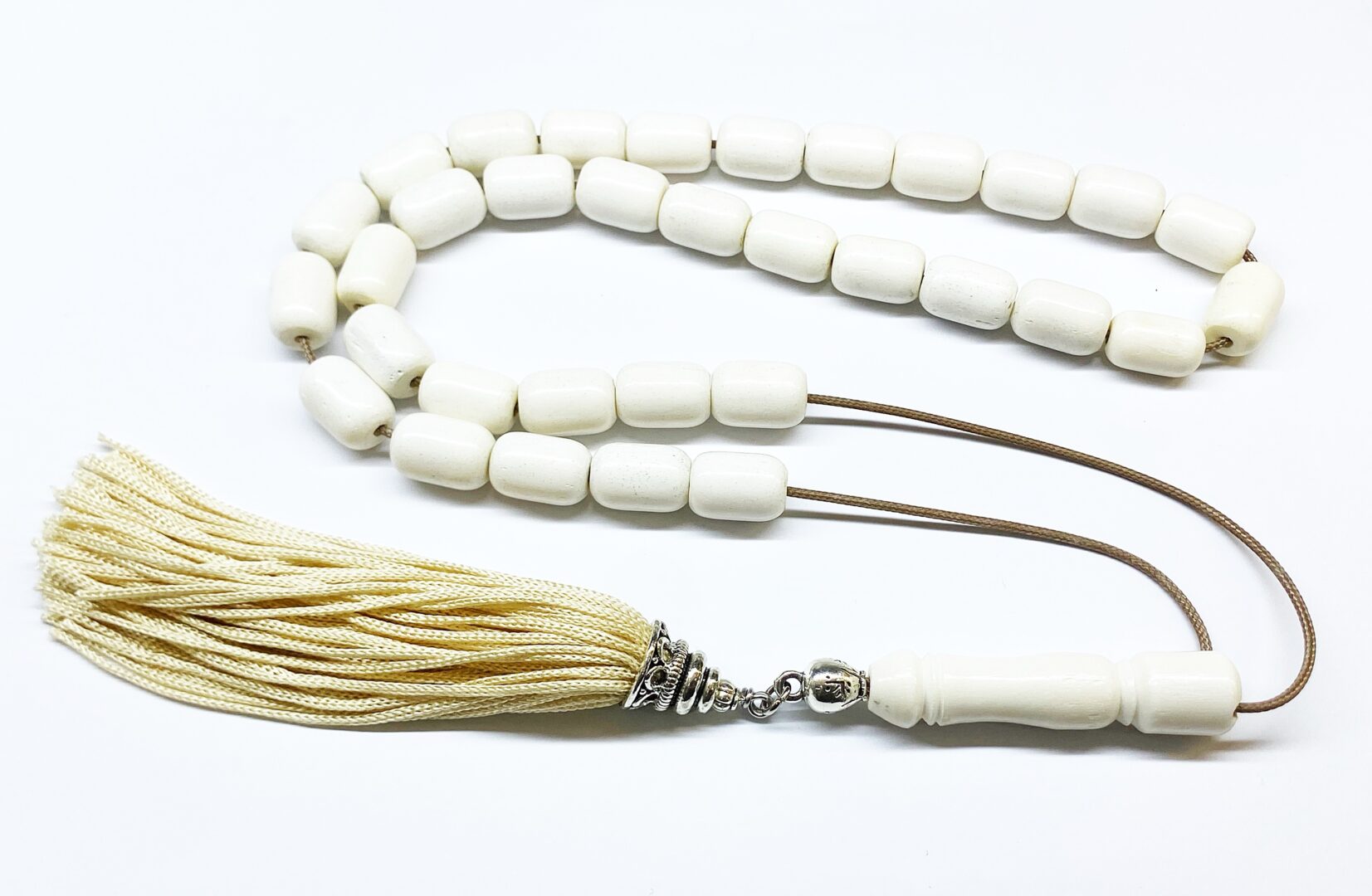 Χειροποίητο κομπολόι με 33 χάντρες από κόκκαλο καμήλας σε σχήμα βαρελάκι .