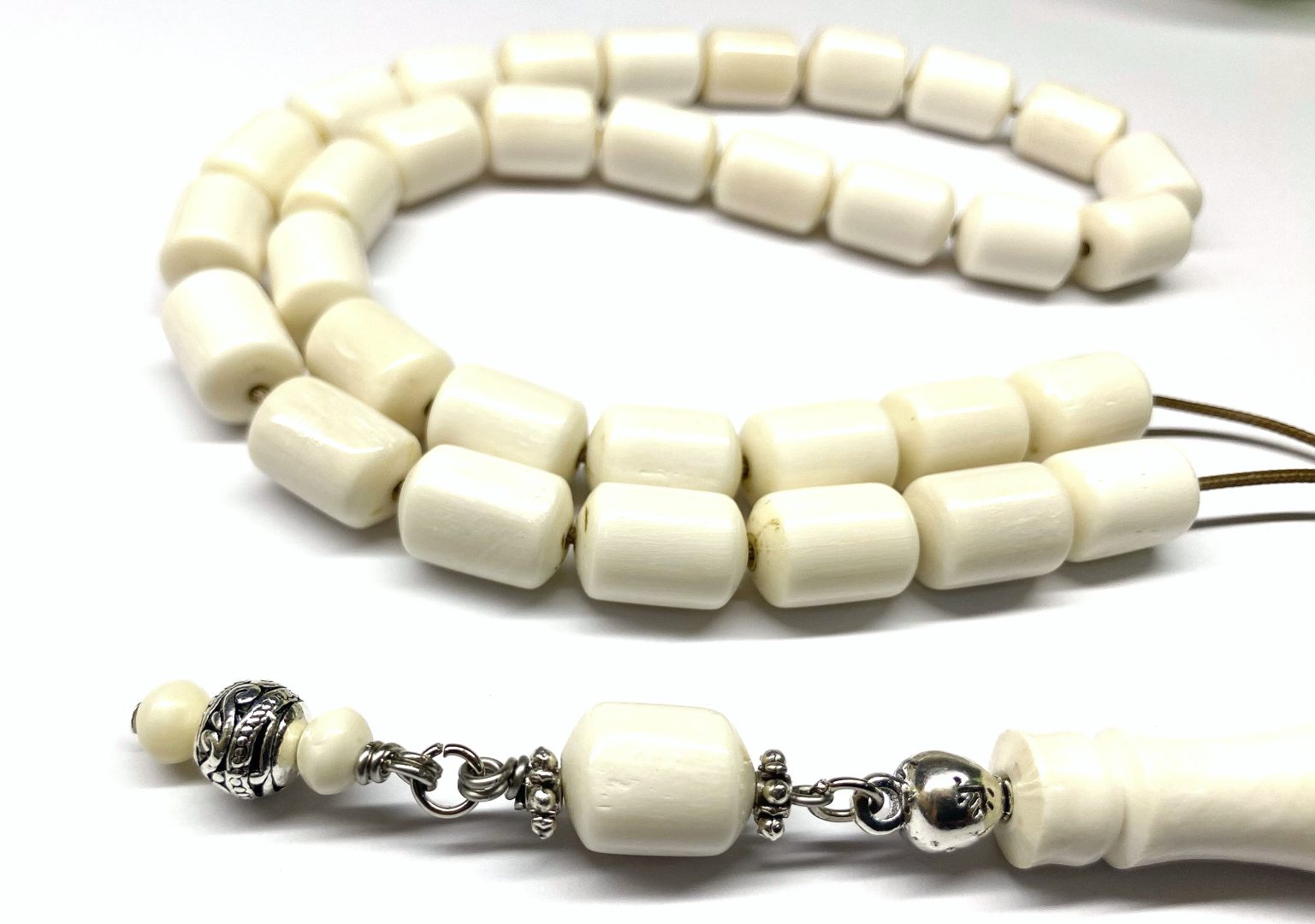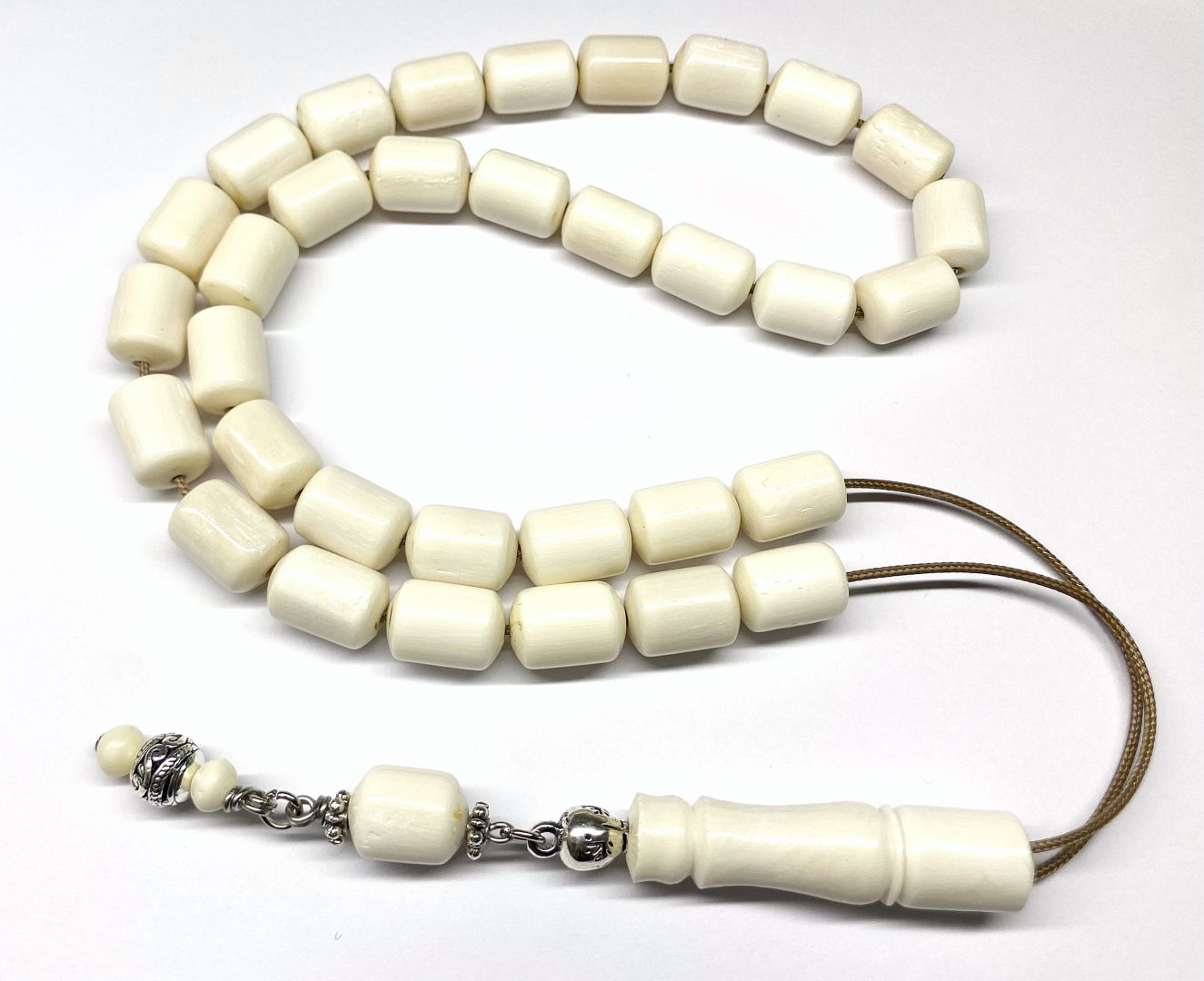 Χειροποίητο κομπολόι με 33 χάντρες από κόκκαλο καμήλας σε σχήμα βαρελάκι .