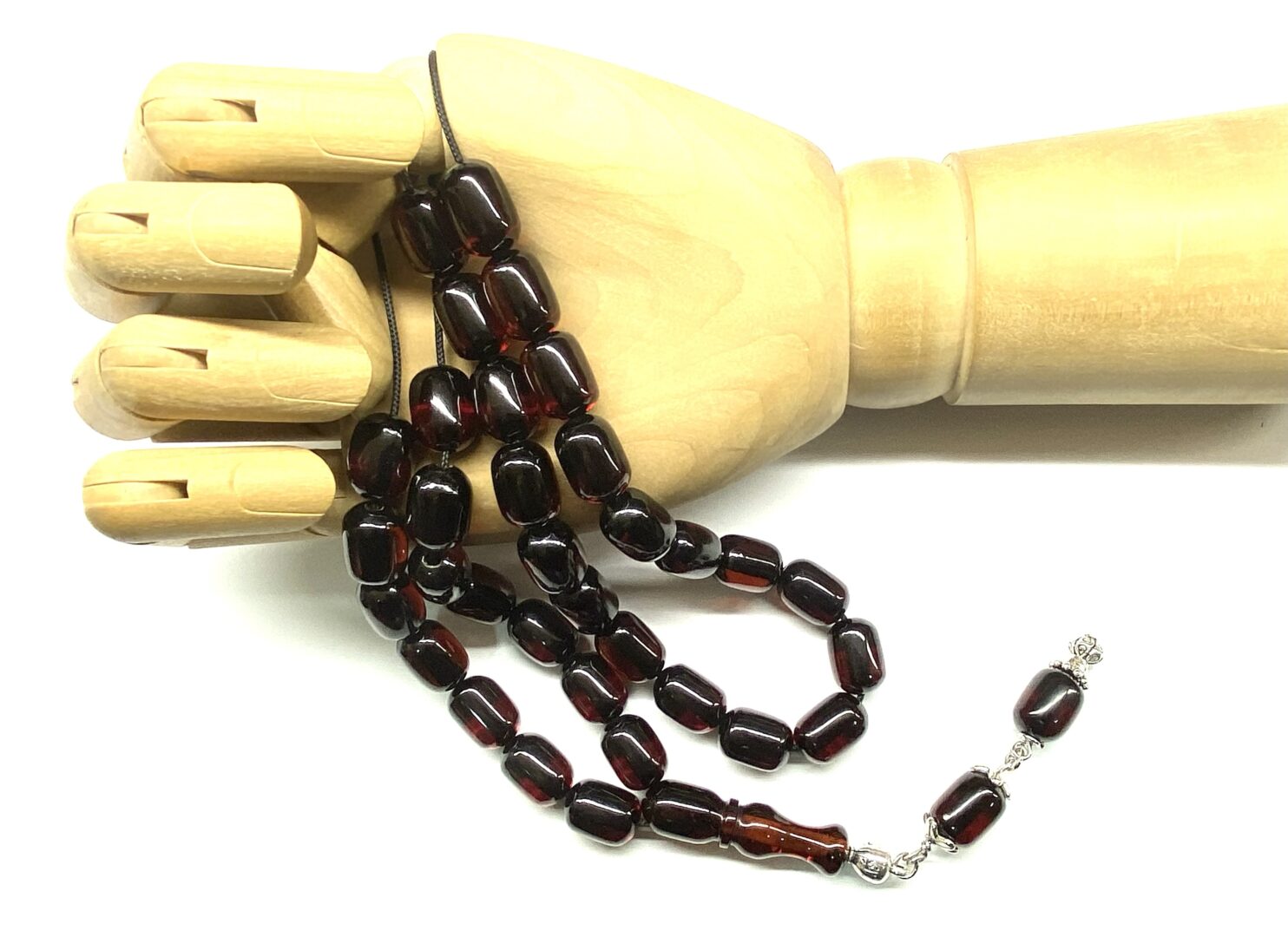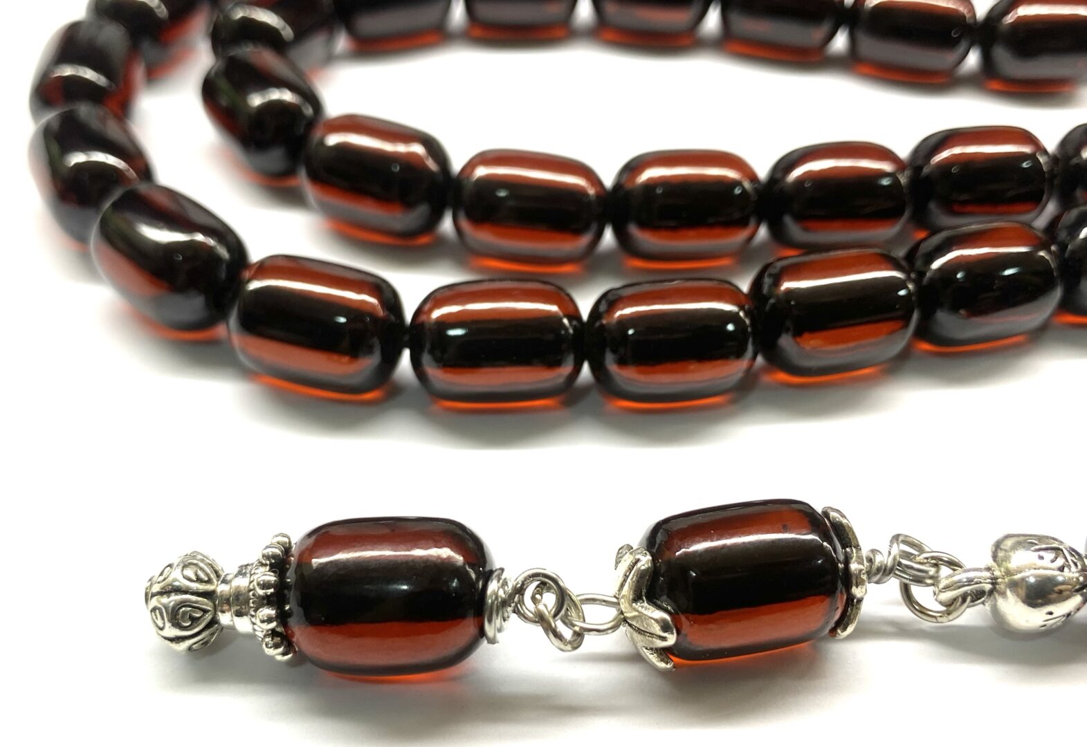 Χειροποίητο κομπολόι 33άρι από Μαστίχα Αιγύπτου νέας κοπής ιδιαίτερο χρώμα, σκούρο κονιάκ.