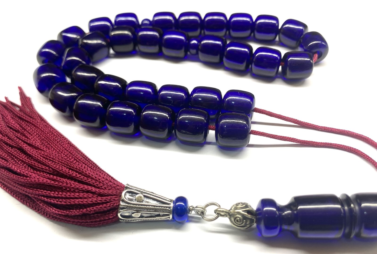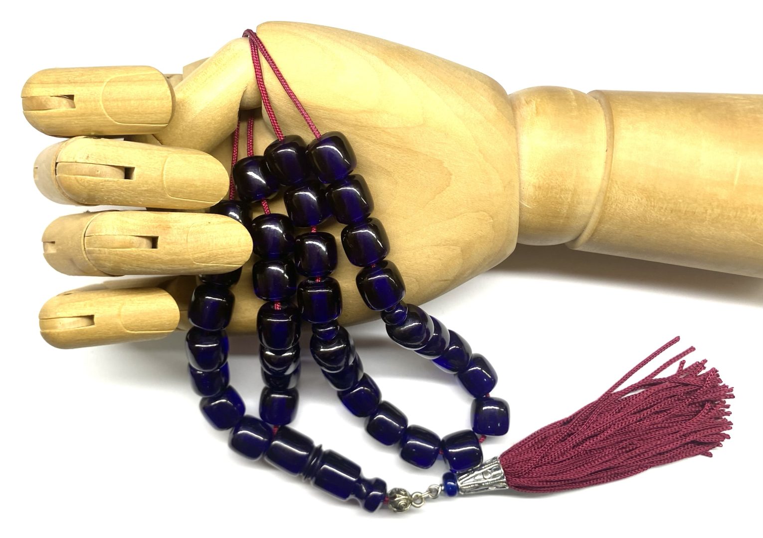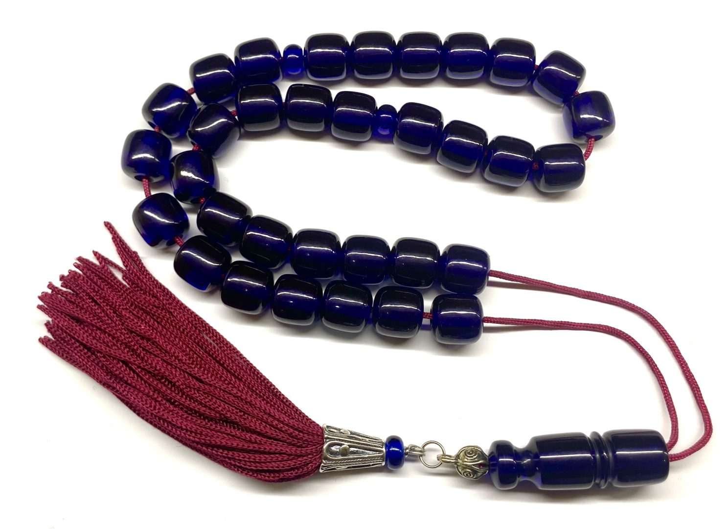 Χειροποίητο κομπολόι 33άρι από Μαστίχα Αιγύπτου νέας κοπής σε μπλε ρουά χρώμα .