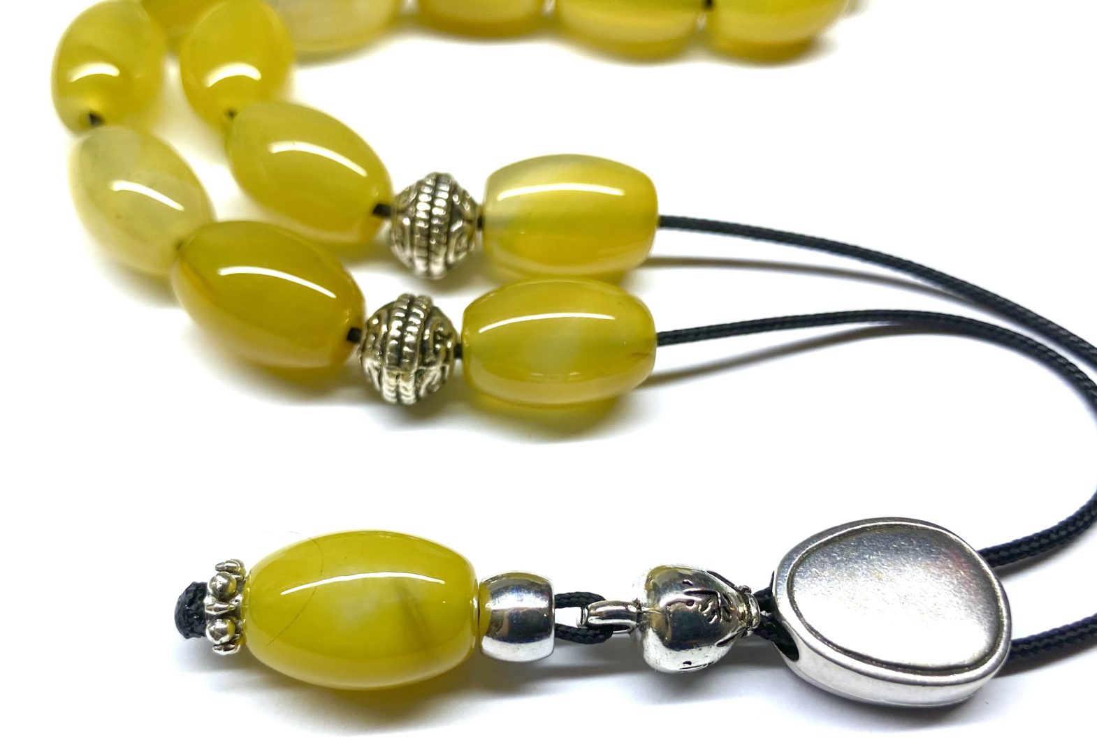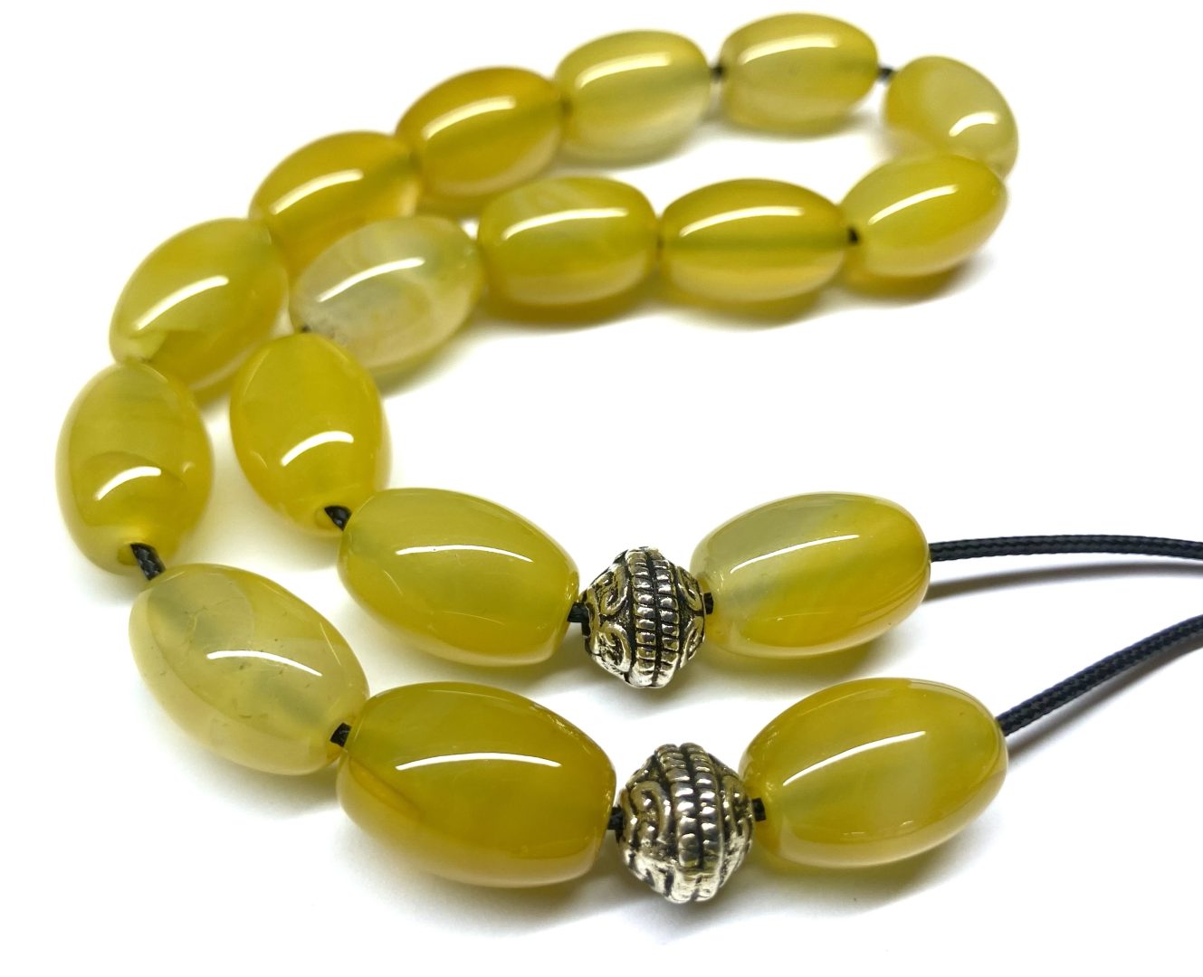 Χειροποίητο κομπολόι από ημιπολύτιμες χάντρες Αχάτη κίτρινο σε σχήμα ελιά .