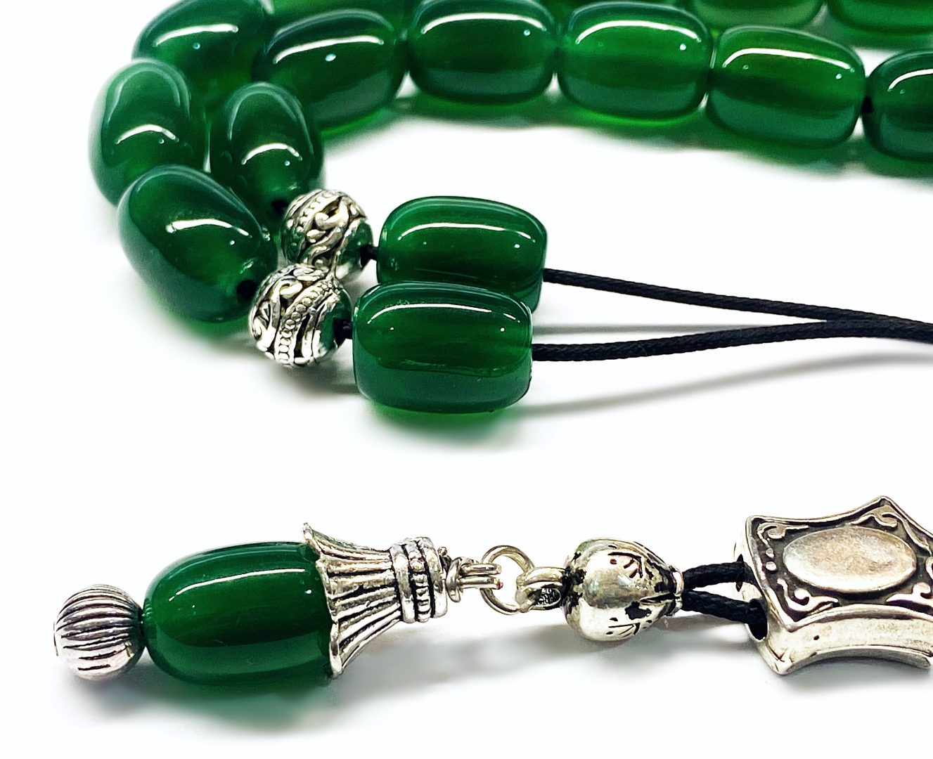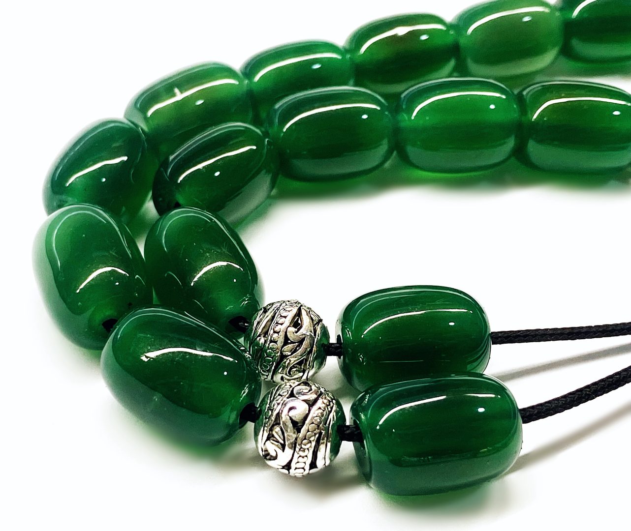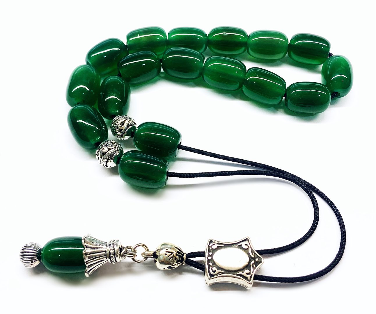 Χειροποίητο κομπολόι από ημιπολύτιμες χάντρες Αχάτη πράσινο σε σχήμα βαρελάκι.