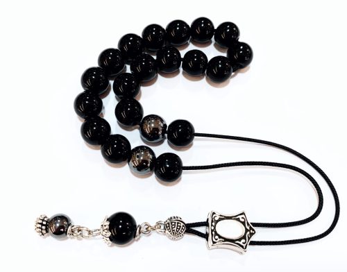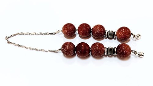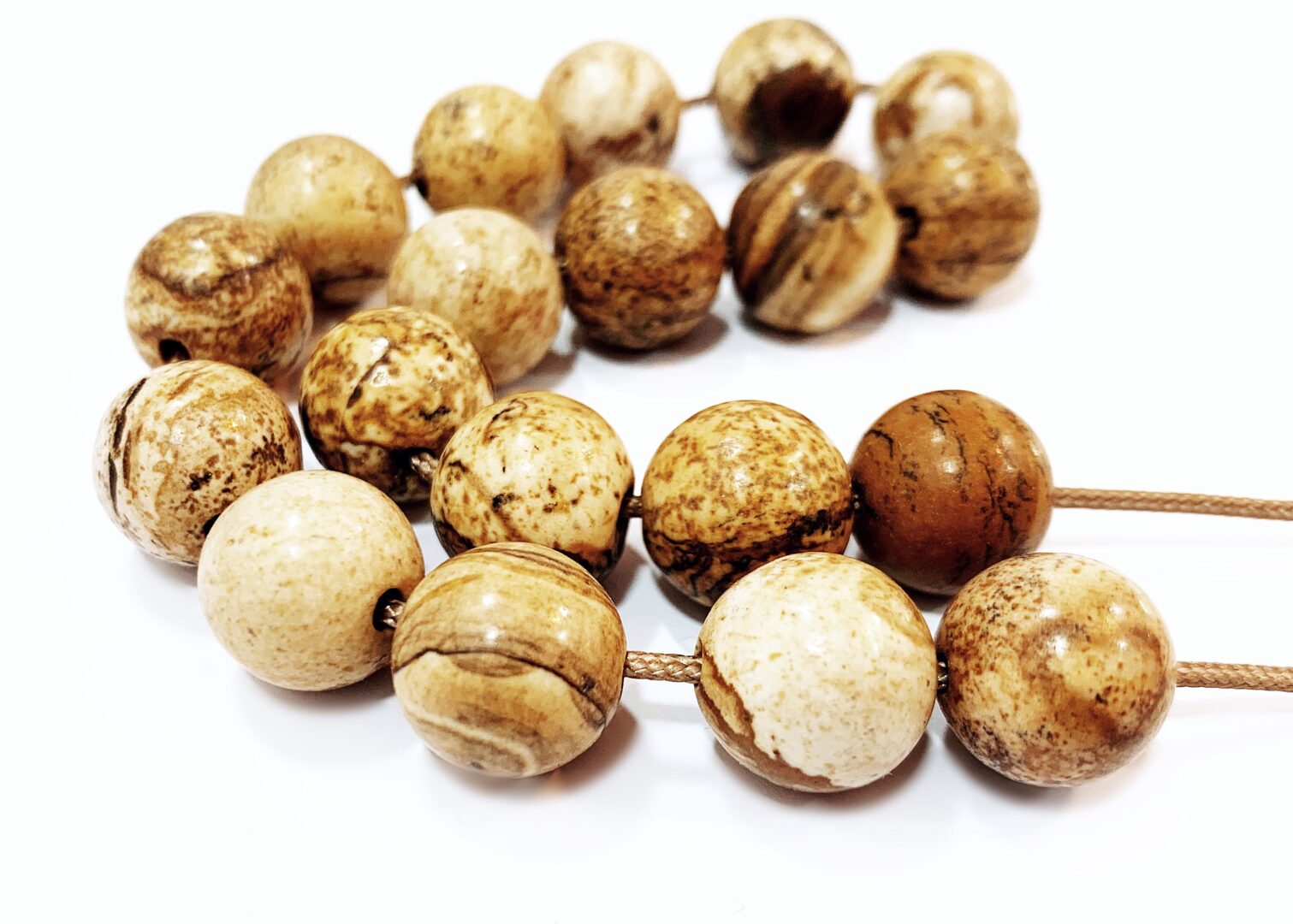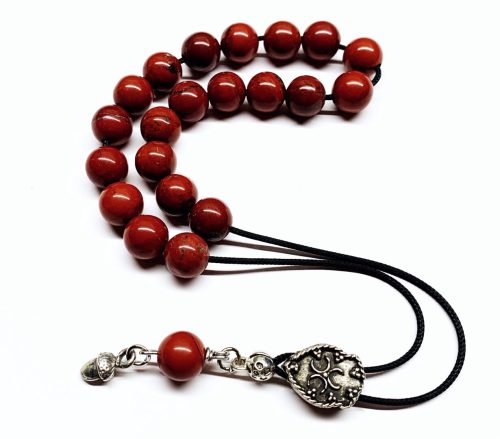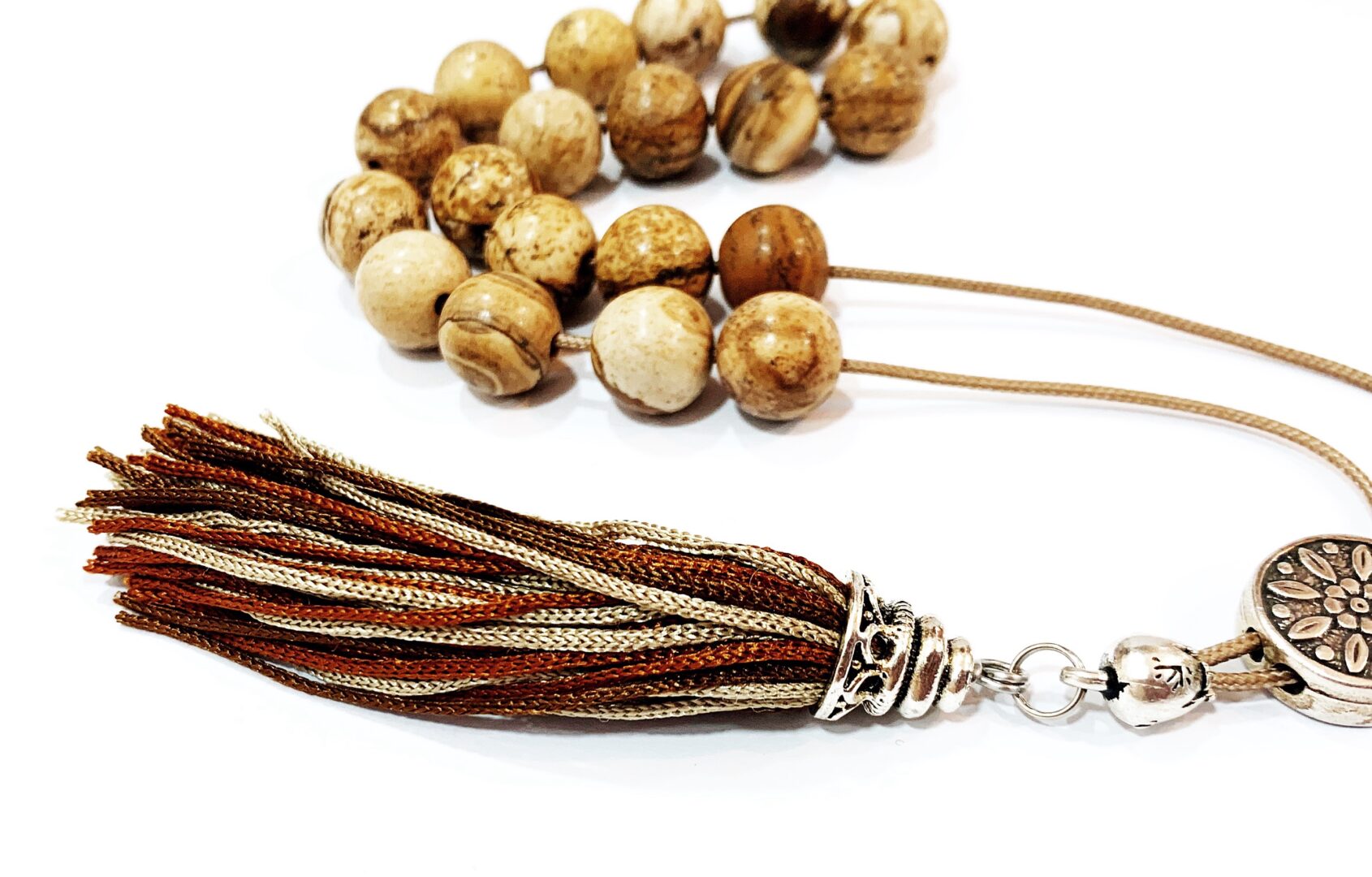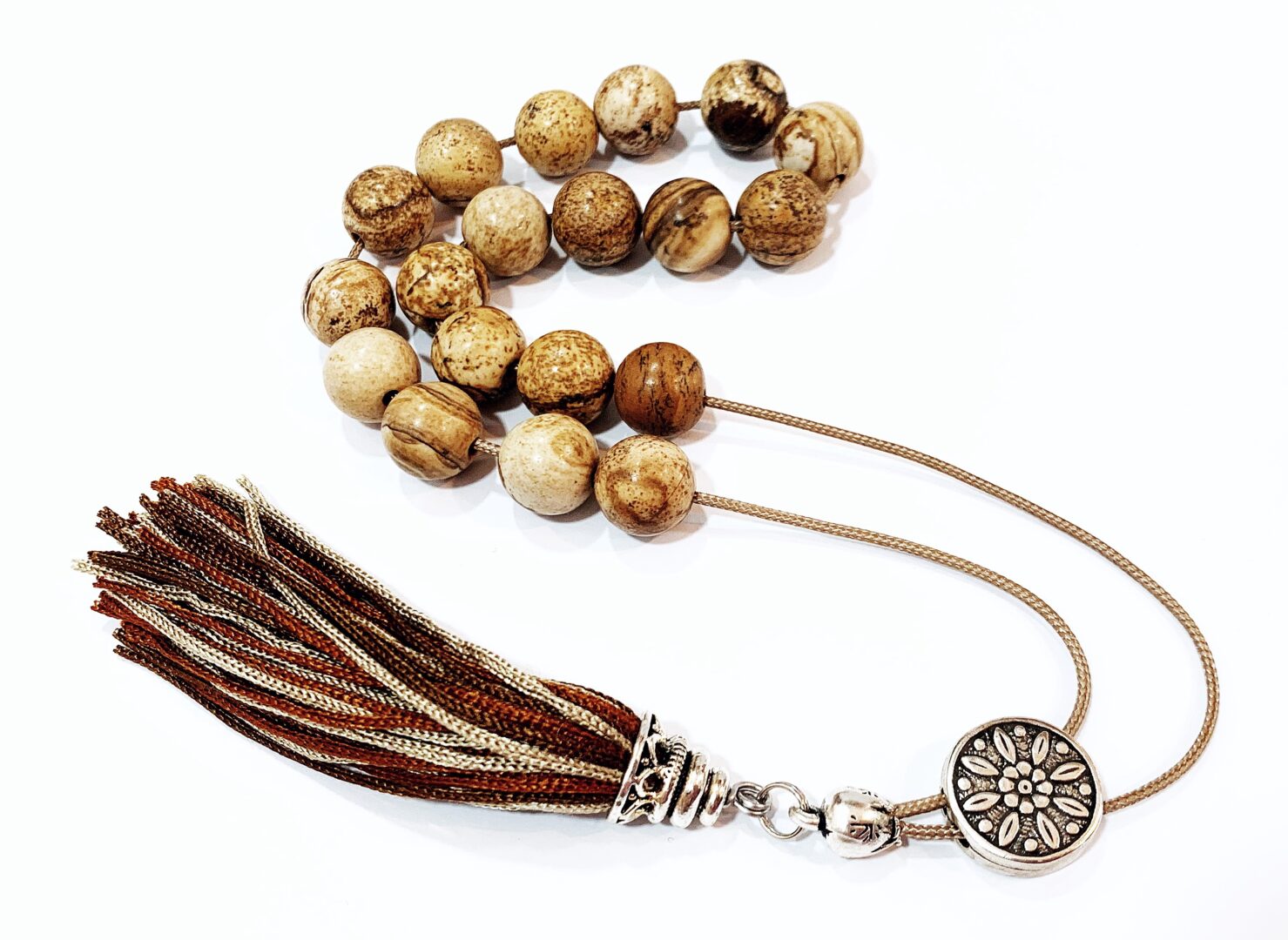 Χειροποίητο κομπολόι από ημιπολύτιμες χάντρες Ίασπις Απολιθωμένο ξύλο σε σχήμα στρογγυλό.