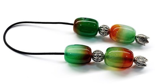 Δεμένο με 19 χάντρες, θυρεό και πλούσια φούντα στο τελείωμα.