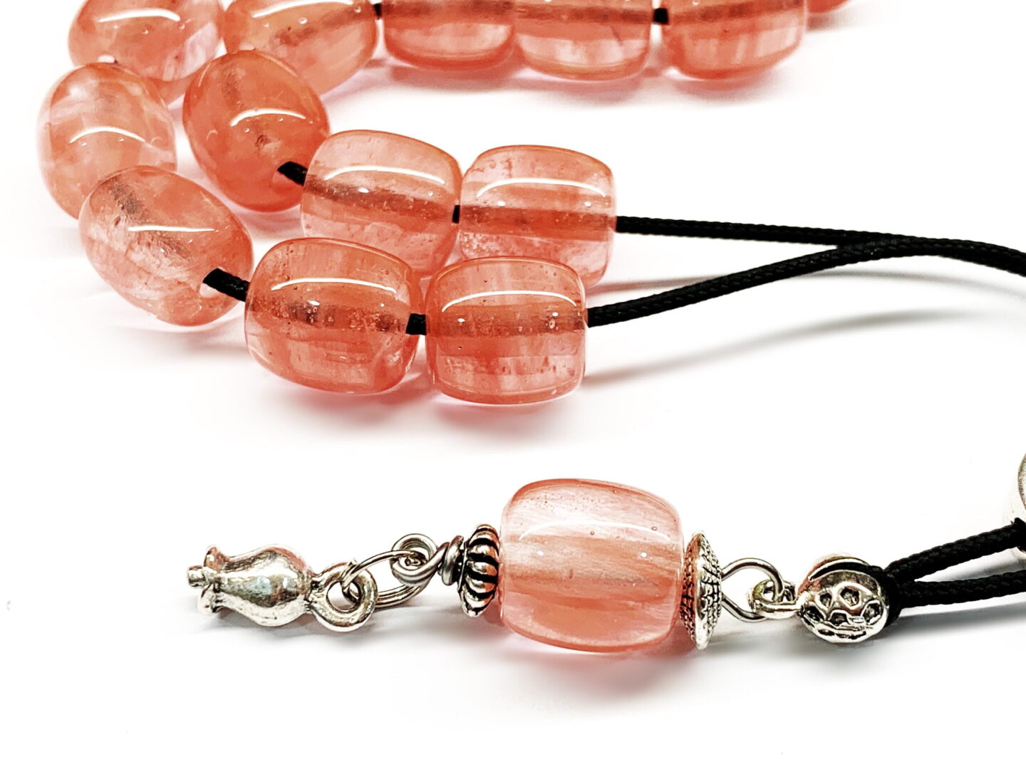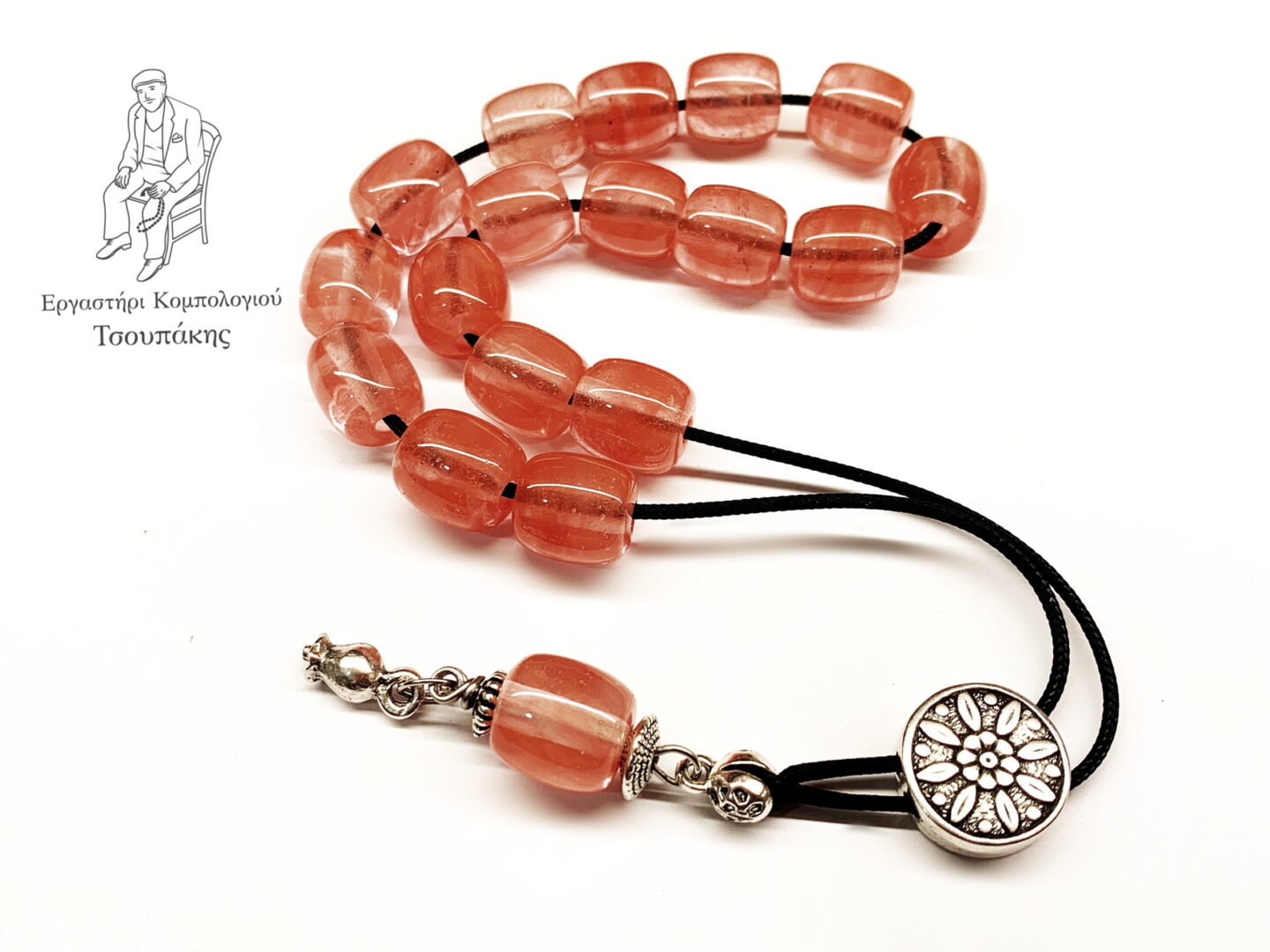 Χειροποίητο κομπολόι από ημιπολύτιμες χάντρες Χαλαζία quartz φράουλα .