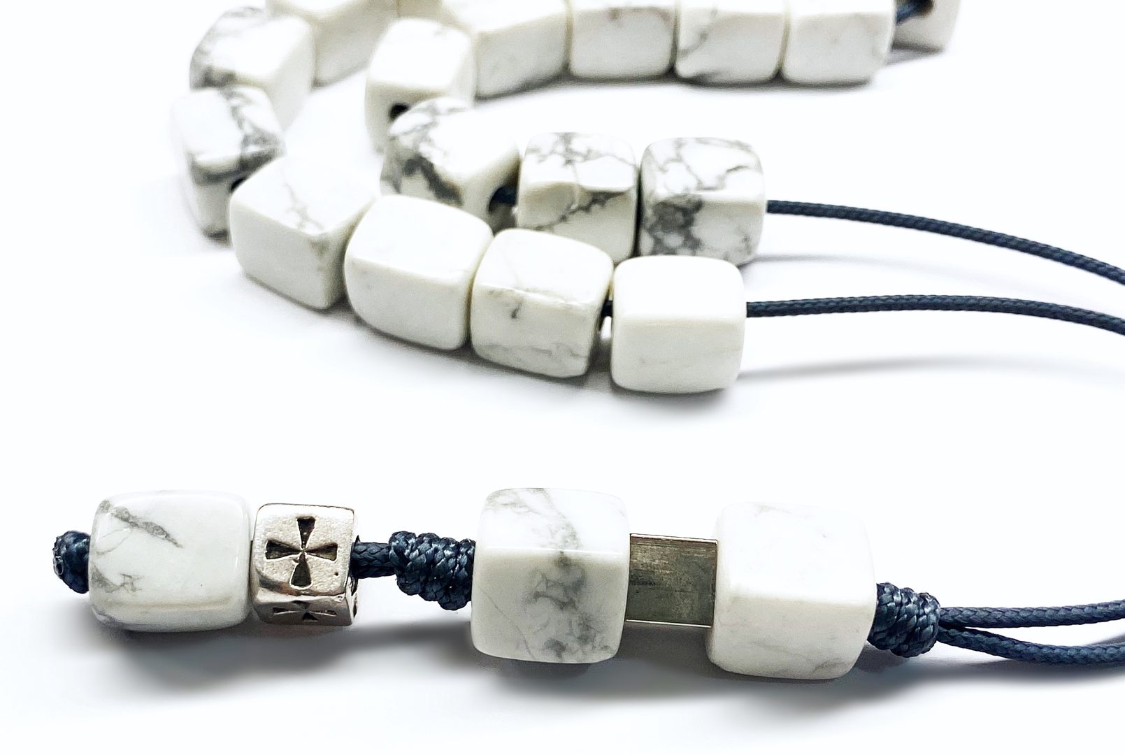 Χειροποίητο κομπολόι από ημιπολύτιμες χάντρες Χαολίτη σε σχήμα κύβου .