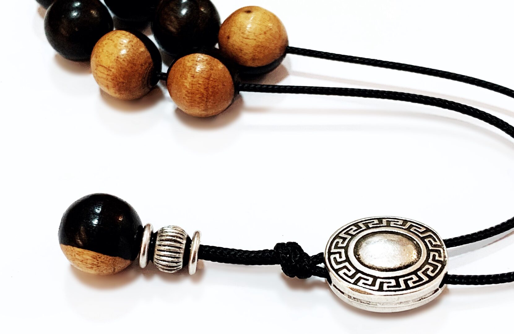 Χειροποίητο κομπολόι από δίχρωμο ξύλο Έβενου σε στρογγυλό σχήμα.