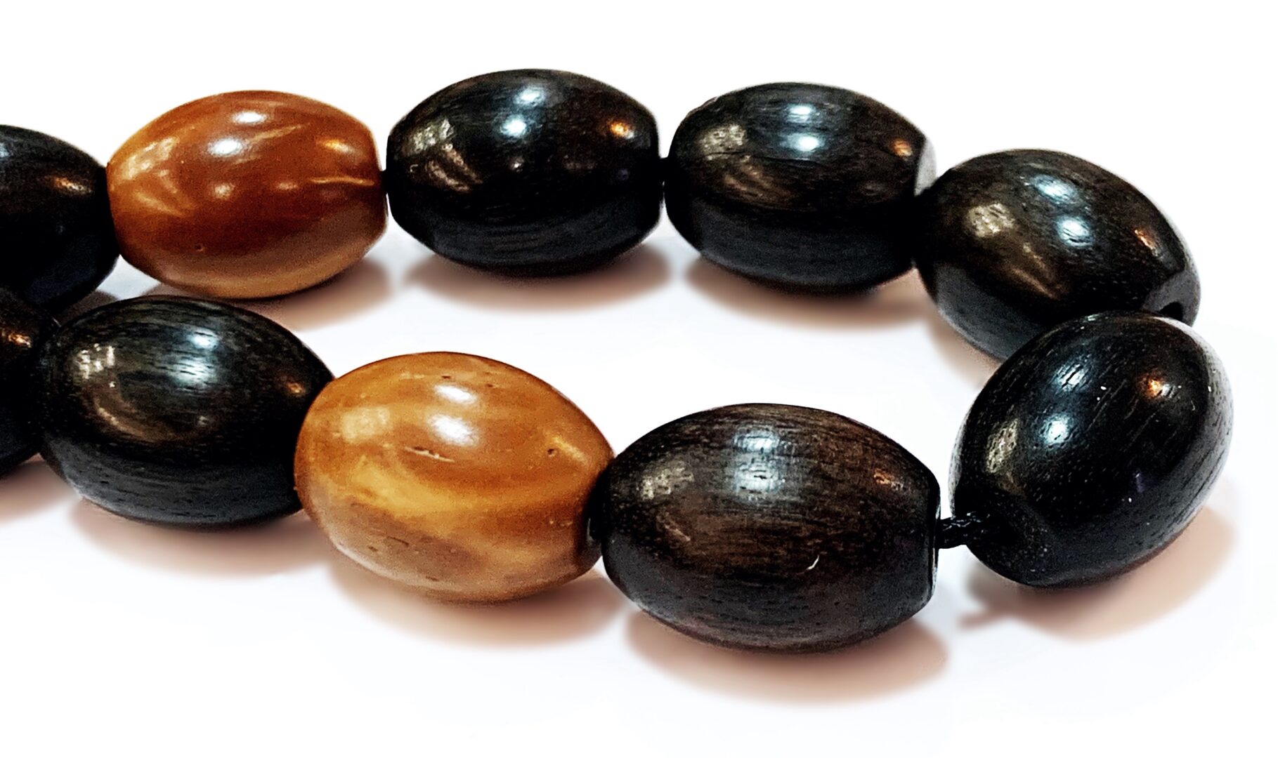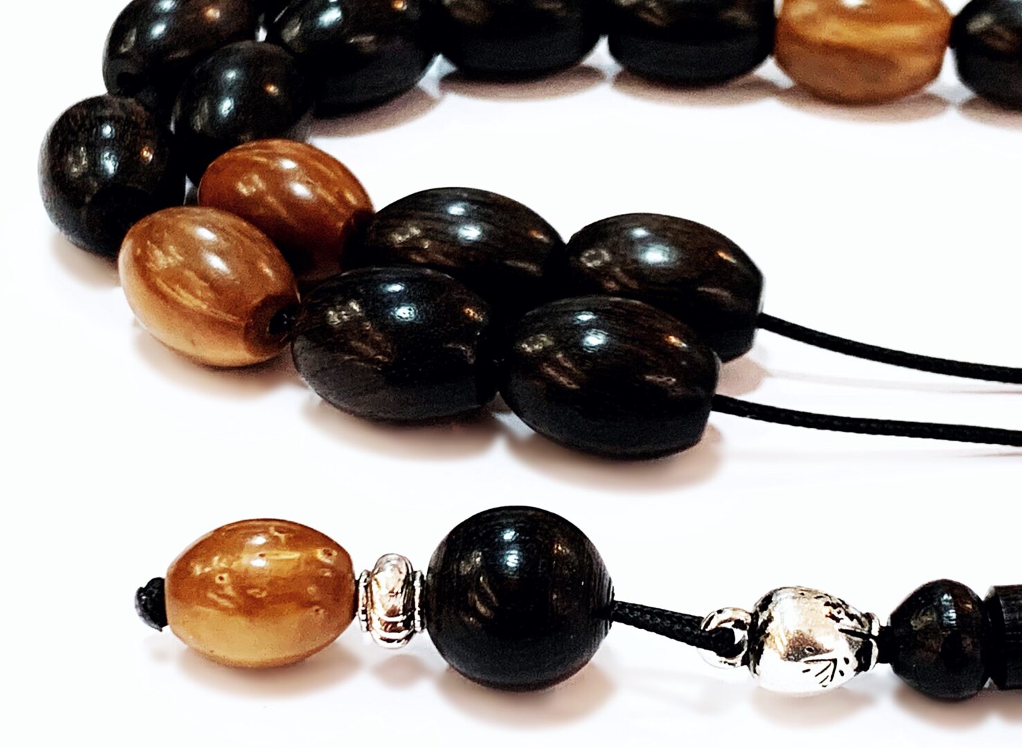 Χειροποίητο κομπολόι από ξύλο Έβενου και ξύλο φοινικόδεντρου Κούκ σε σχήμα ελιά .
