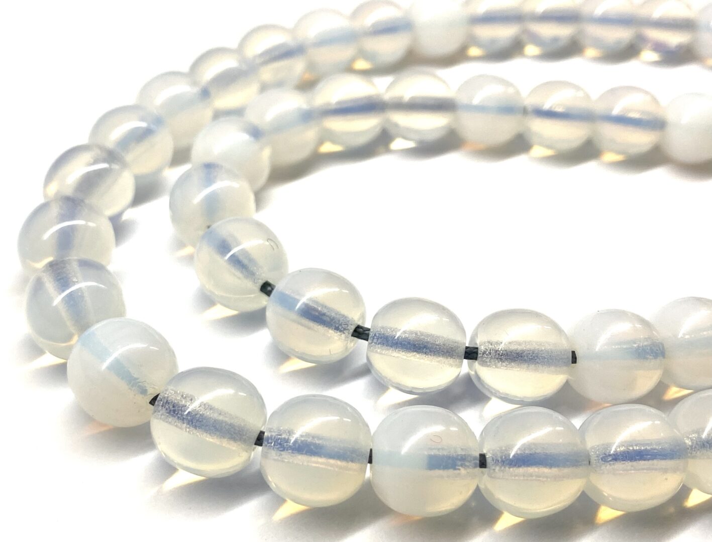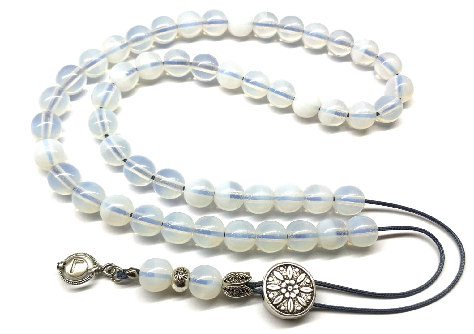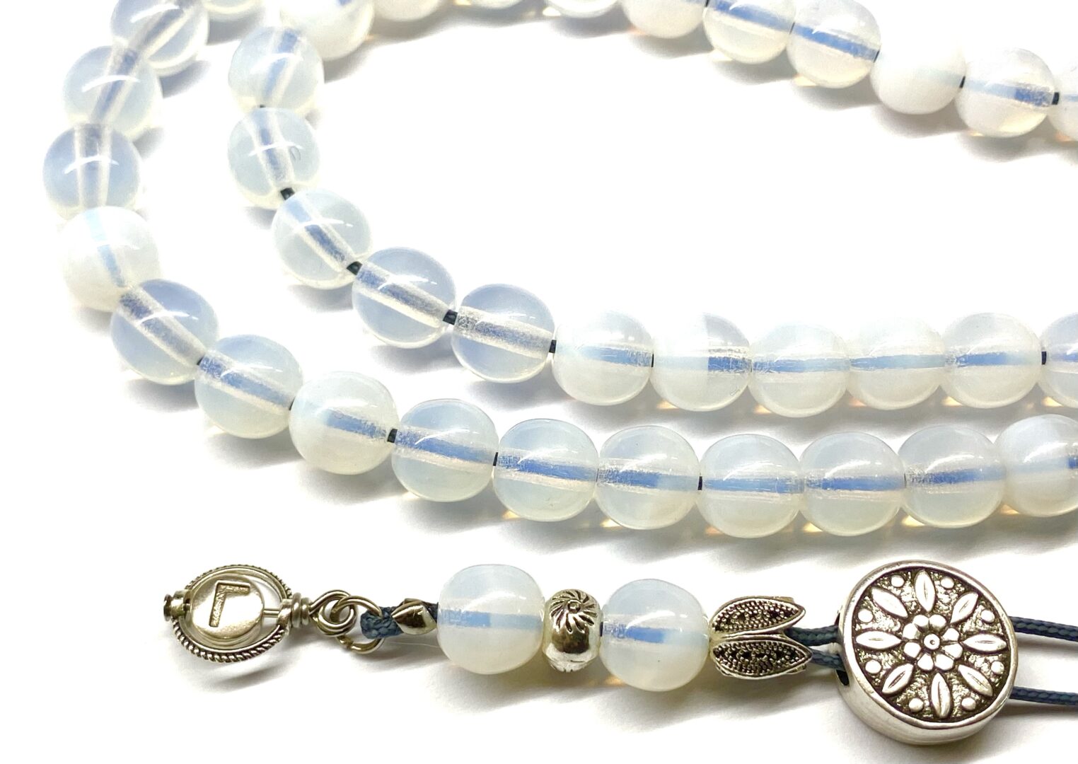 Χειροποίητο μακρύ κομπολόι από ημιπολύτιμο λίθο Φεγγαρόπετρα με 51 χάντρες σε στρογγυλό σχήμα .