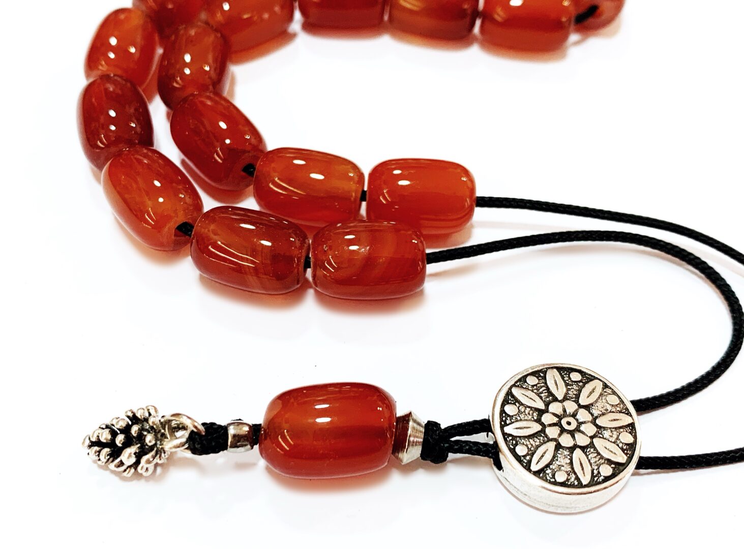 Χειροποίητο κομπολόι από ημιπολύτιμες χάντρες  Αχάτη Καρνεολη σε σχήμα βαρελάκι.