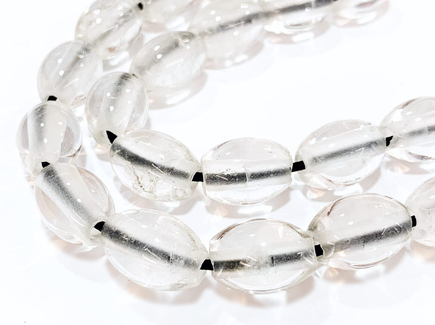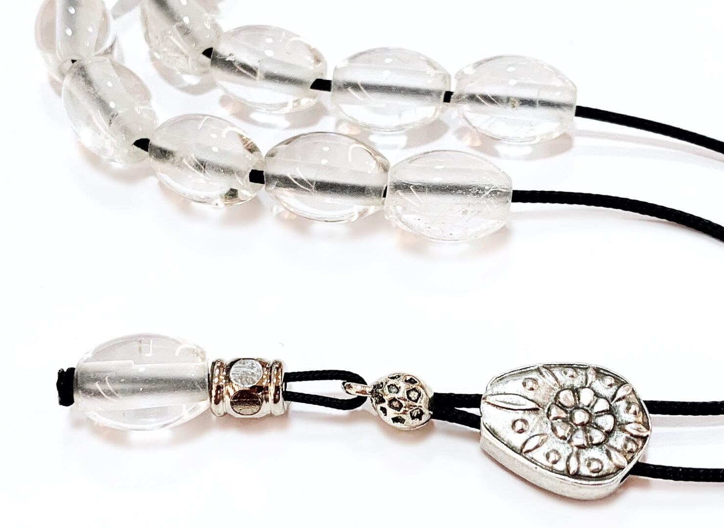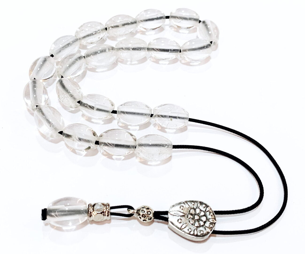 Χειροποίητο κομπολόι από ημιπολύτιμες χάντρες λευκού Χαλαζία quartz σε σχήμα ελιά .