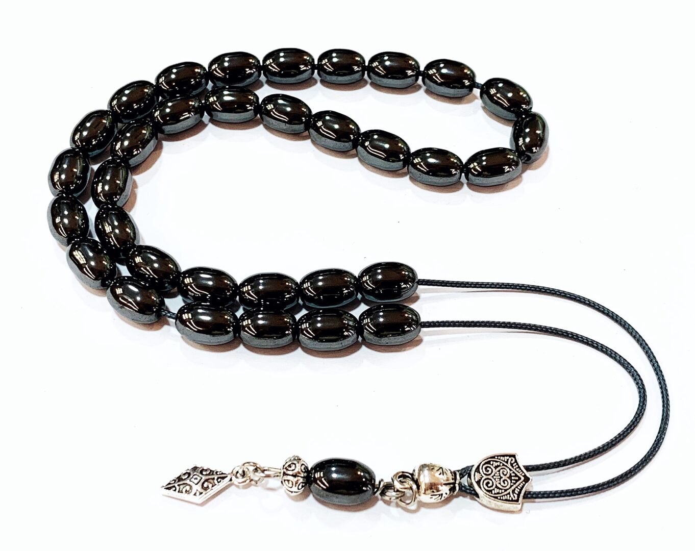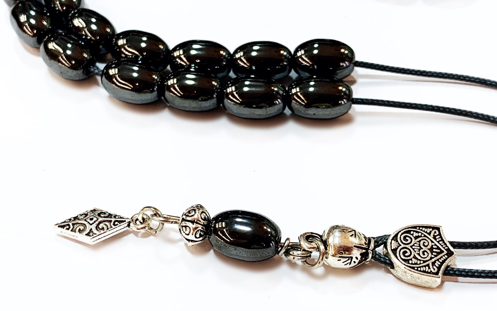 Χειροποίητο 33άρι κομπολόι από ημιπολύτιμο λίθο Αιματίτη σε σχήμα ελιά  .