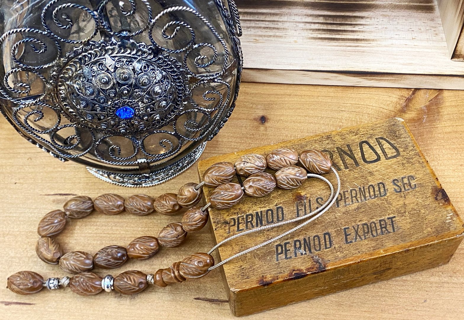 Κομπολόι από Κουκ ξύλο φοινικόδεντρου σκαλιστό WOO 7