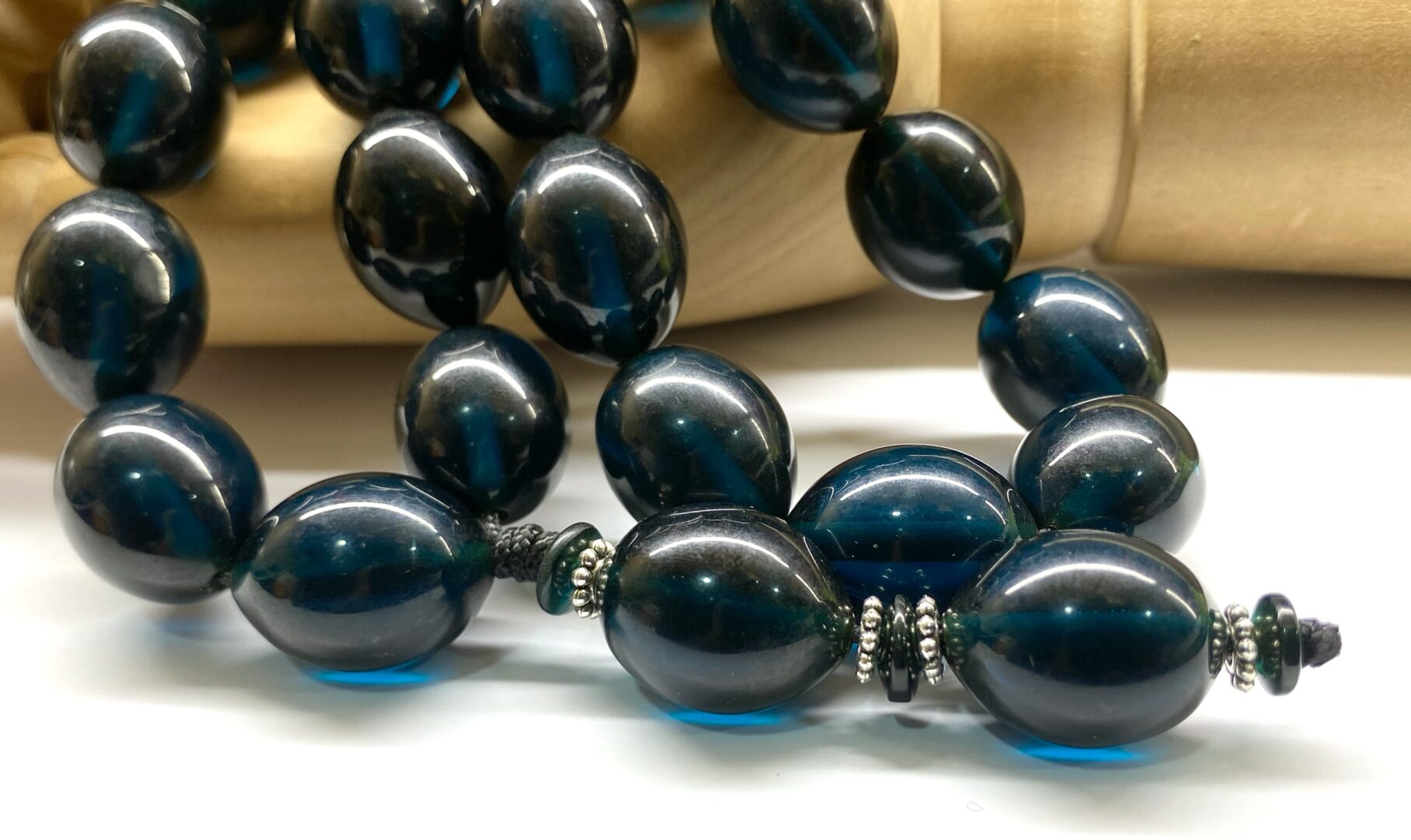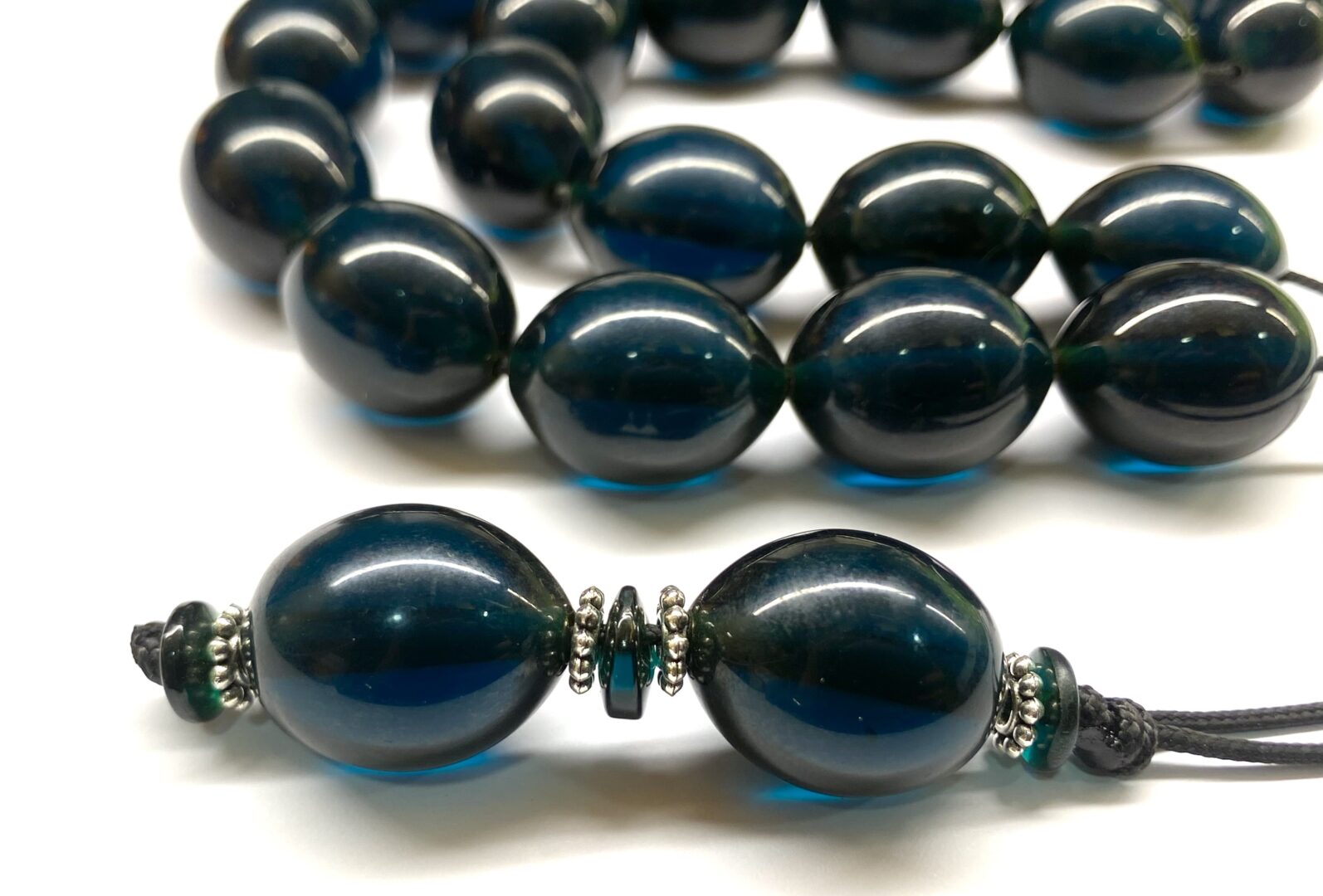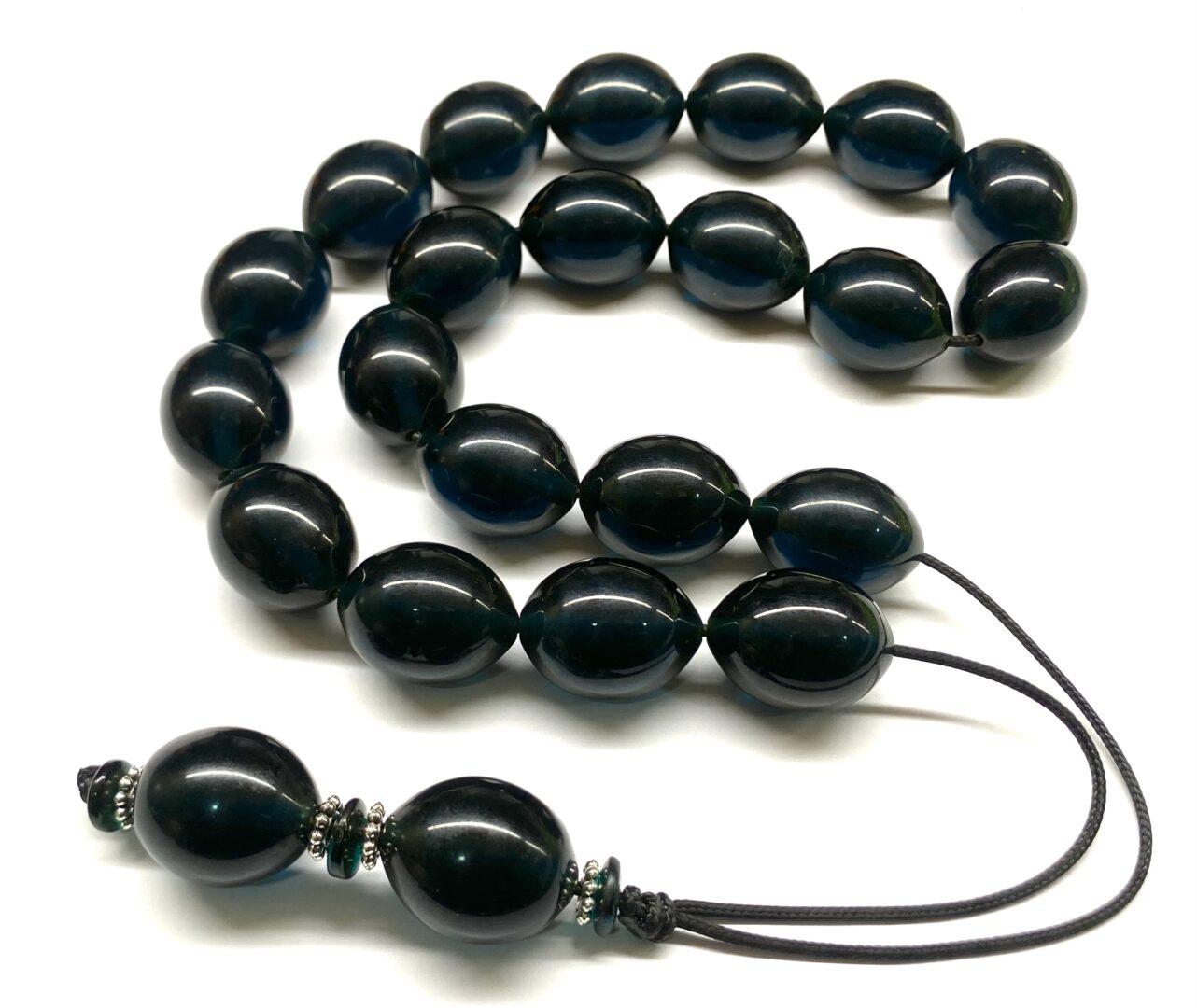 Χειροποίητο κομπολόι από Μαστίχα Αιγύπτου νέας κοπής σε ιδιαίτερο χρώμα, σκούρο πετρόλ διαυγές .
