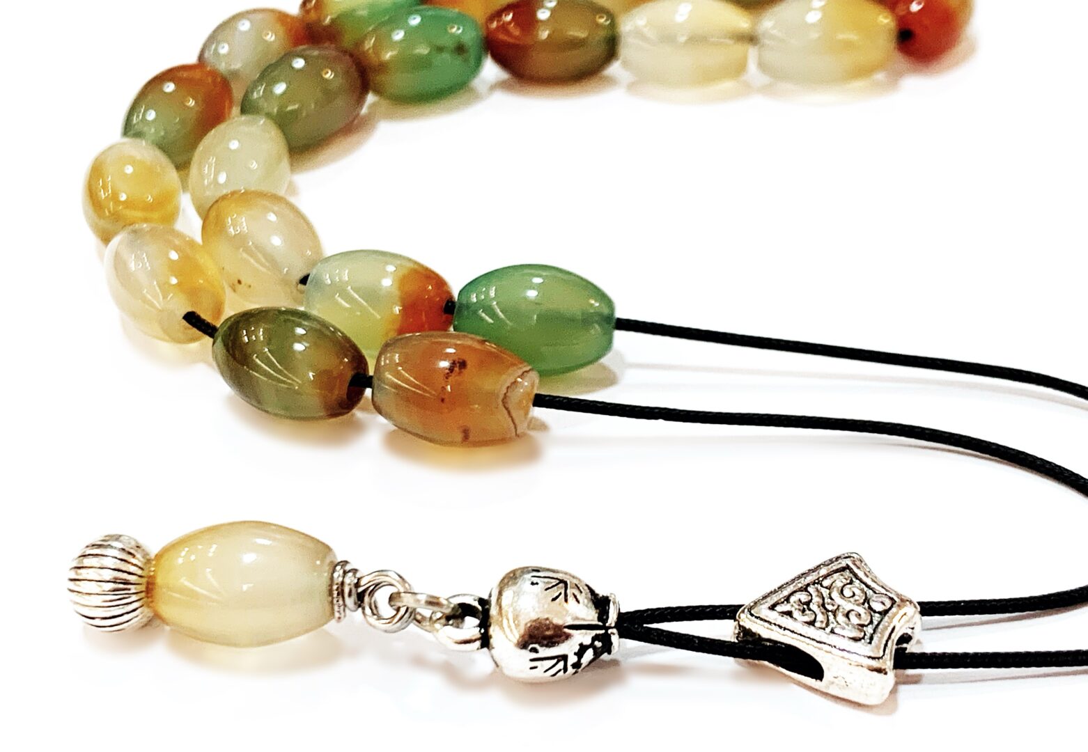 Χειροποίητο κομπολόι από ημιπολύτιμο λίθο Αχάτη σε σχήμα ελιάς με πράσινο κεραμιδί χρώμα