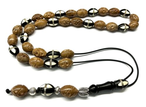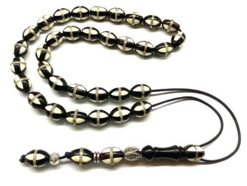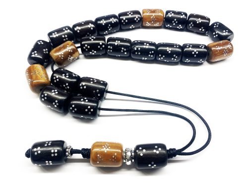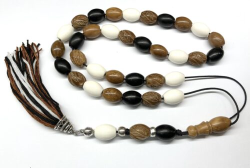 Χειροποίητο κομπολόι από κόκκαλο καμήλας , ξύλο Έβενου και ξύλο Κούκ σε σχήμα ελιάς.