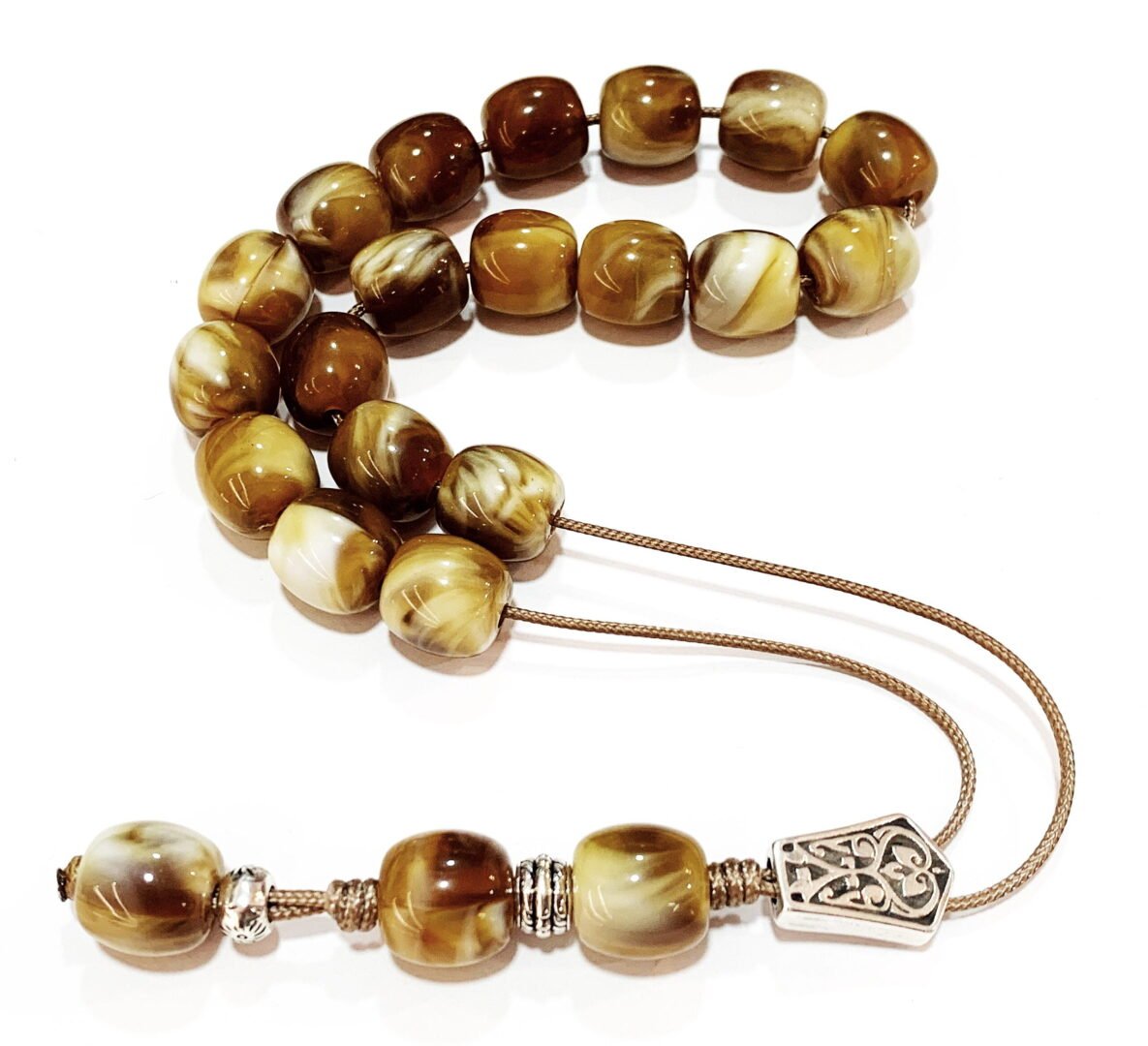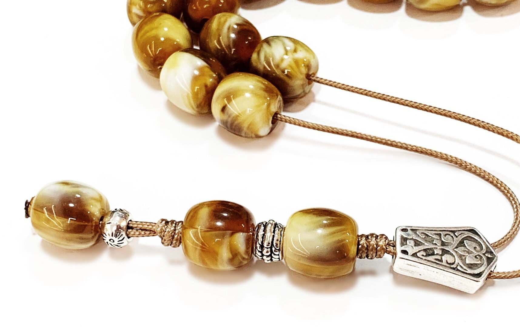 Χειροποίητο κομπολόι από ρητίνη υψηλής ποιότητας σε μελί χρώμα .