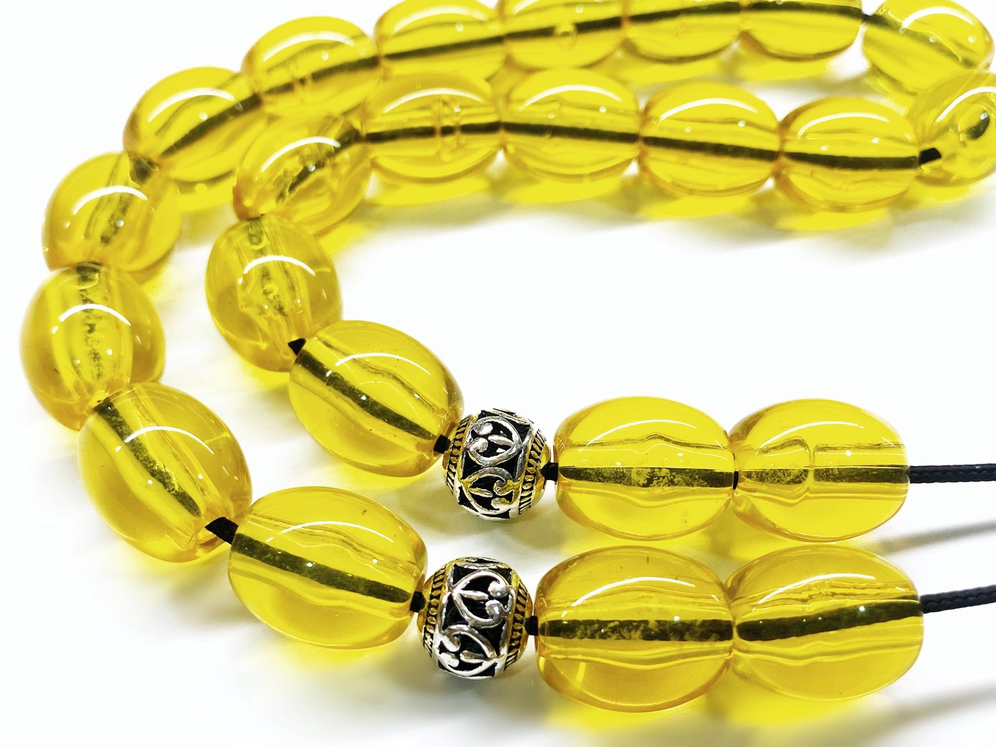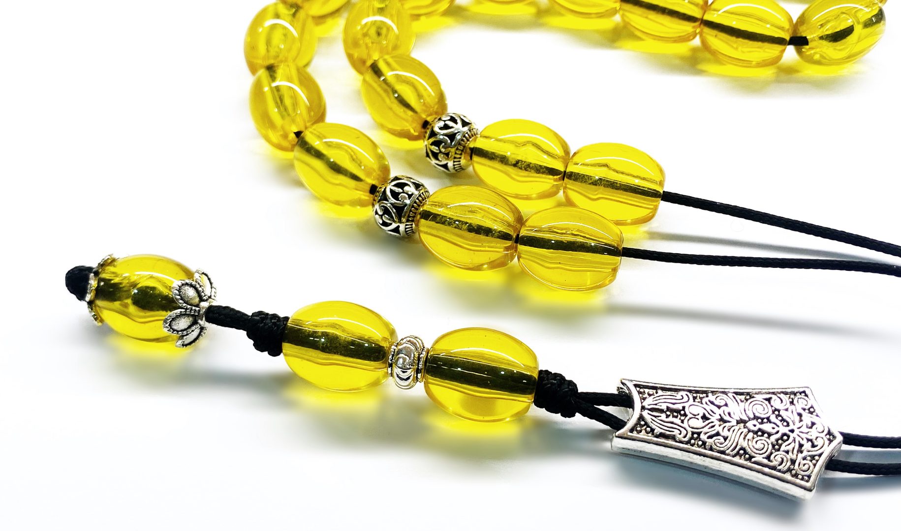 Χειροποίητο κομπολόι από ρητίνη υψηλής ποιότητας στο χρώμα του κεχριμπαριού.