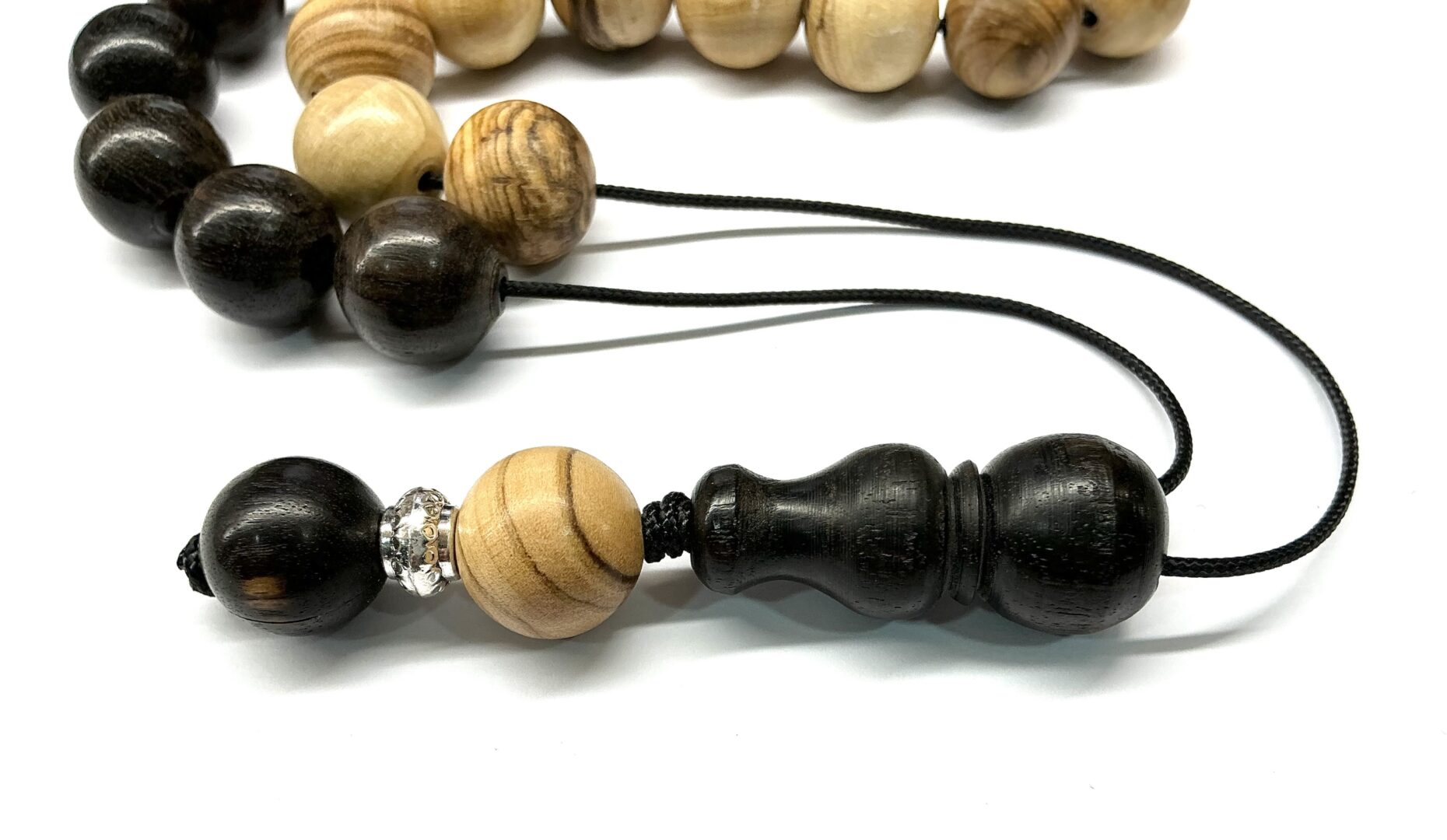 Χειροποίητο κομπολόι από Έβενο και Ελιά σε στρογγυλό σχήμα.