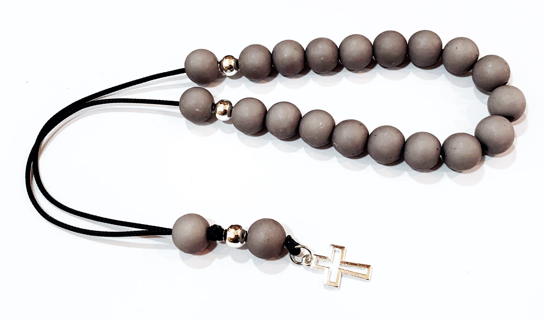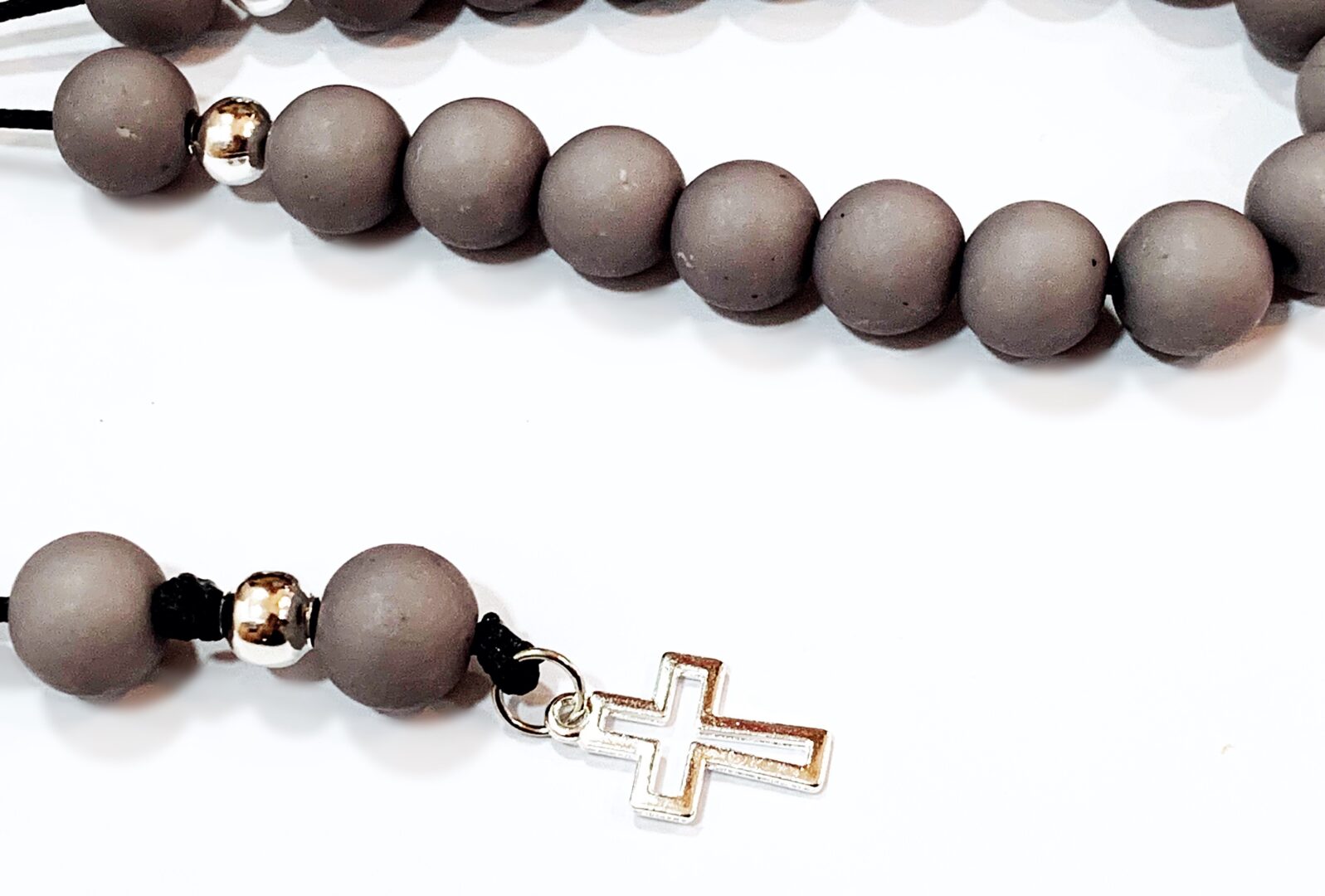 Χειροποίητο κομπολόι από ρητίνη ματ γκρι με ασημί λεπτομέρειες.