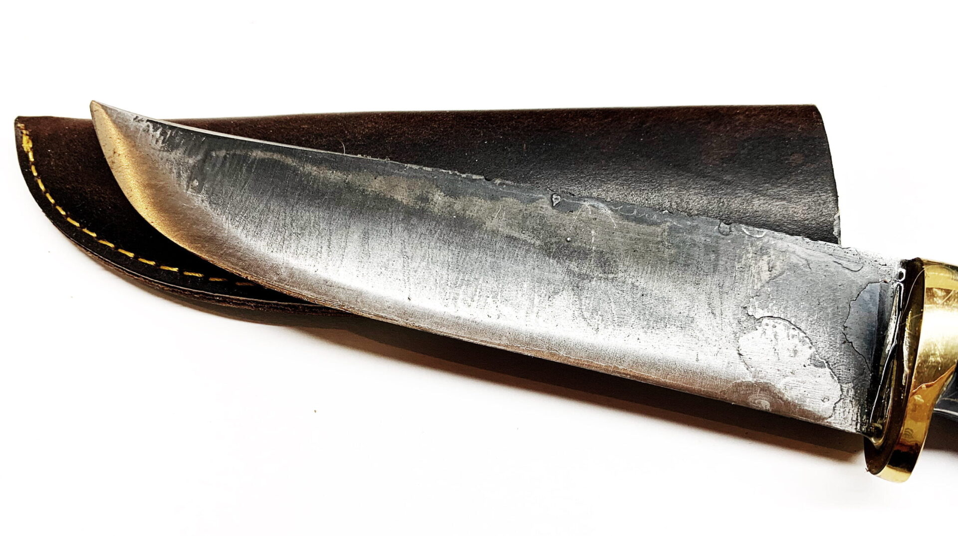 Κρητικό μαχαίρι από οξειδωμένη σούστα με λαβή από κέρατο.