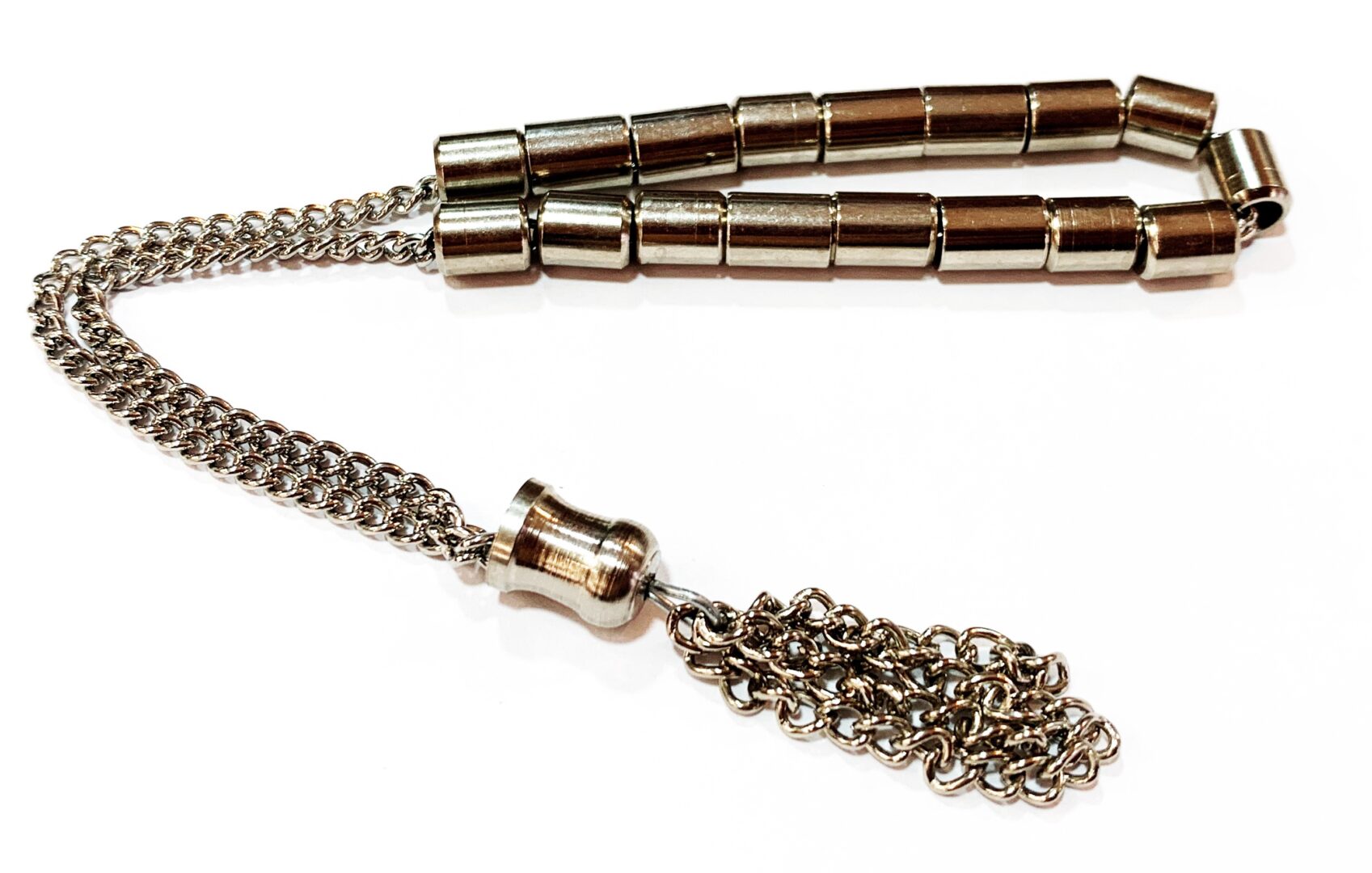 Χειροποίητο κομπολόι από μέταλλο σε σχήμα σωληνάκι.