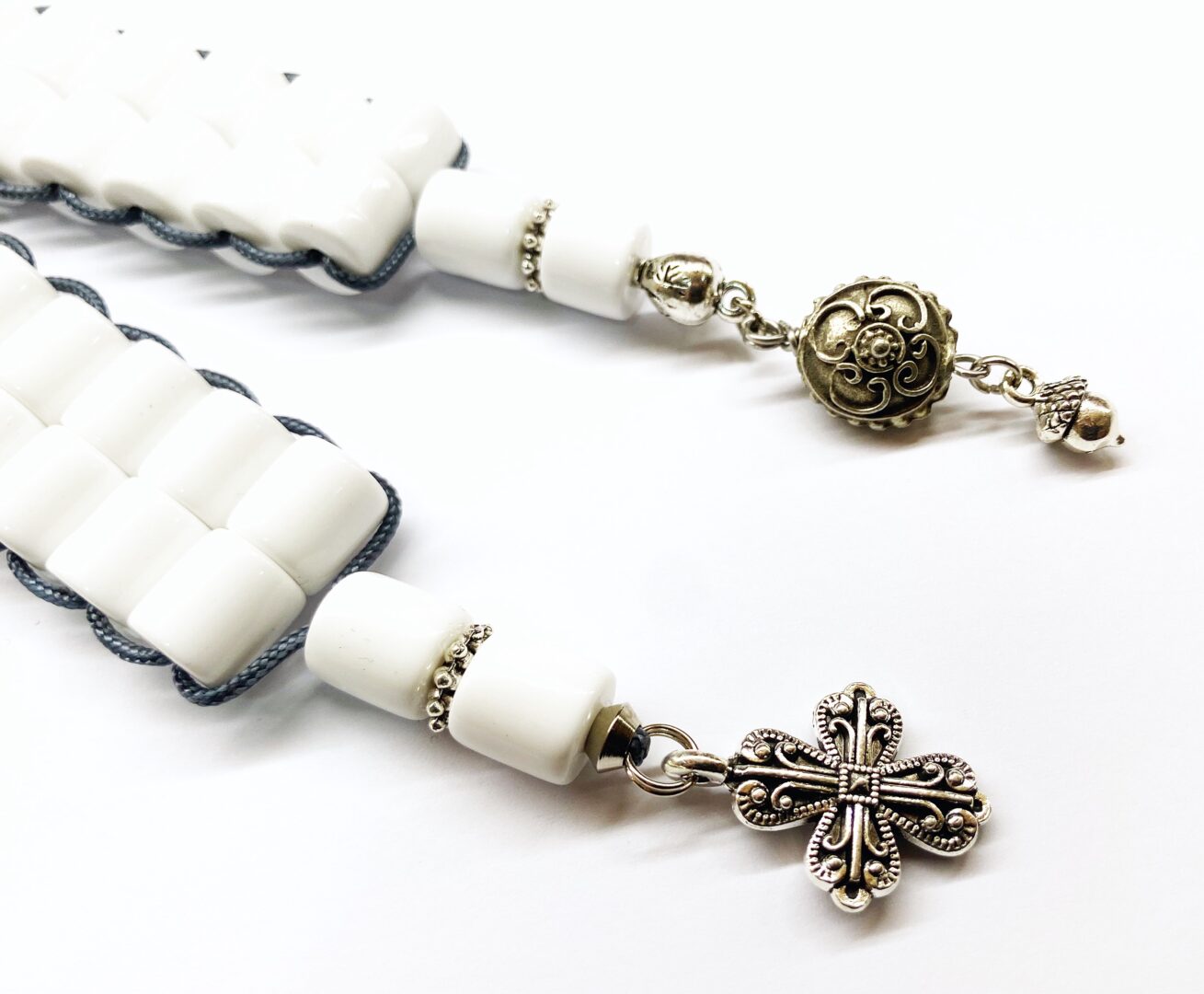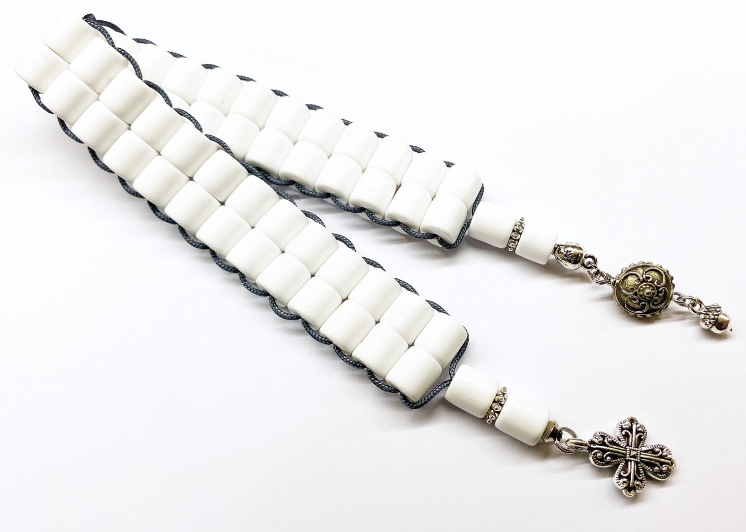 Χειροποίητο Μονολόι – Ρώσικο προσευχητάρι διπλής πλέξης από Ρητίνη σε λευκό χρώμα και σχήμα βαρελάκι.
