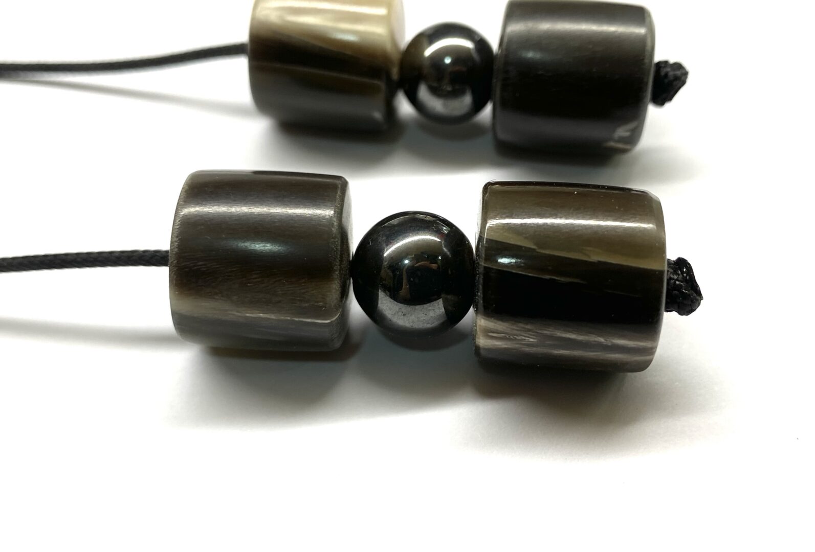 Χειροποίητο μπεγλέρι από χάντρες κέρατο σε φυσικό χρώμα και Αιματίτη .