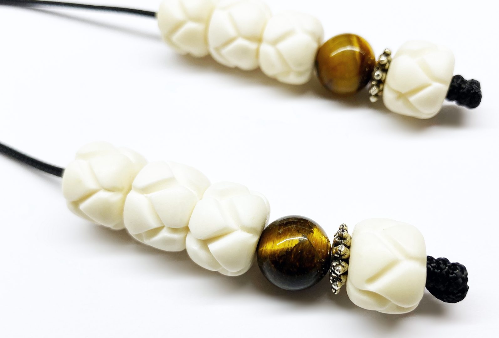 Χειροποίητο μπεγλέρι από Κόκκαλο καμήλας με πολύ ιδιαίτερο σκάλισμα και ημιπολύτιμο λίθο Μάτι τίγρης στρογγυλό .