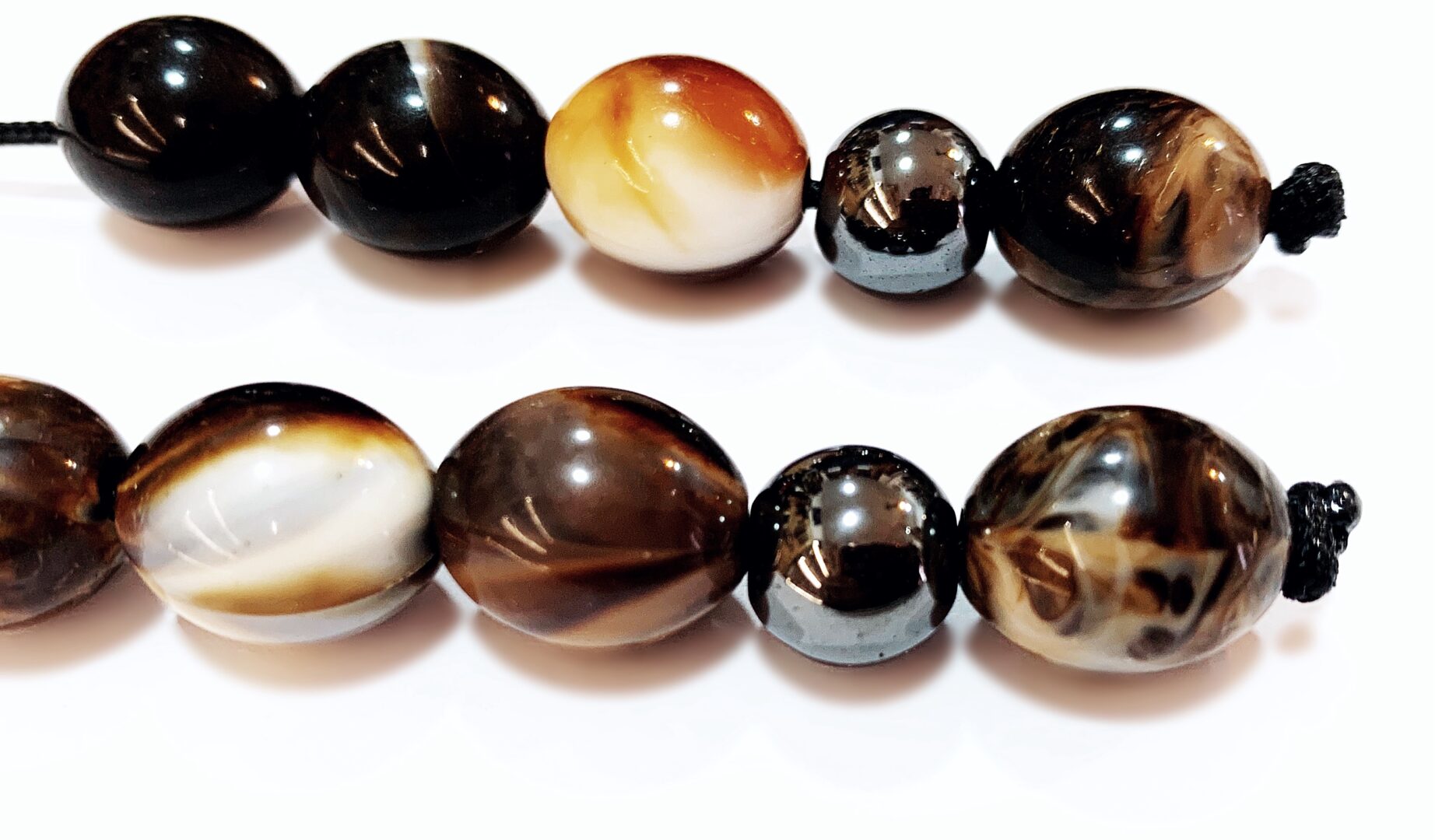 Χειροποίητο μπεγλέρι από ρητίνη δεμένο με 8 χάντρες συν 2 από Αιματίτη.