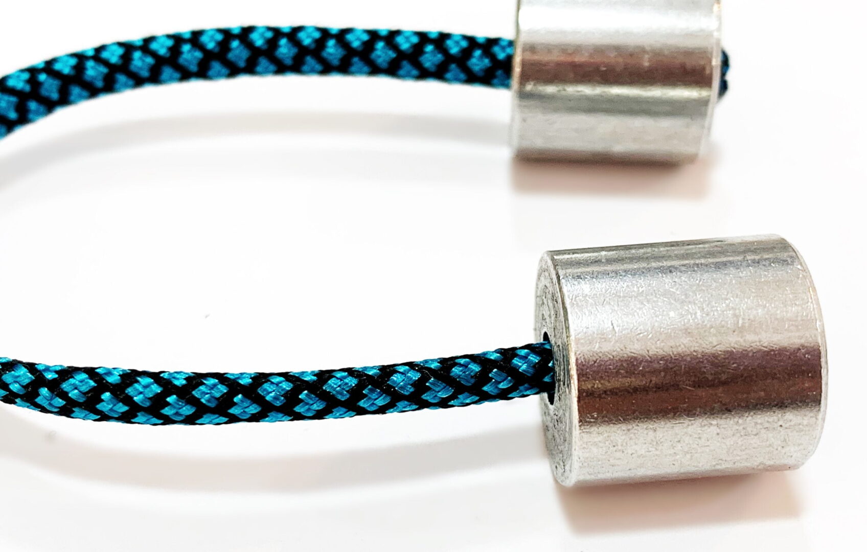 Χειροποίητο μπεγλέρι δεμένο με 2 μεταλλικές χάντρες και τυρκουάζ μαύρο κορδόνι paracord .