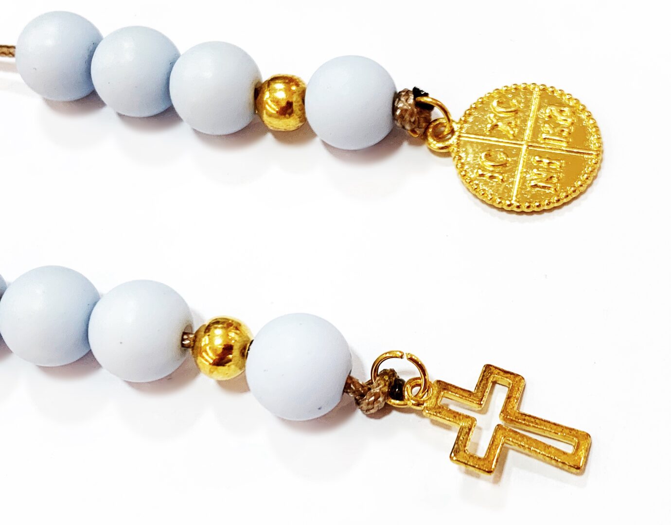 Δεμένο με 8 χάντρες + 2 μεταλλικές χρυσές και χρυσά μεταλλικά στοιχεία στα τελειώματα.