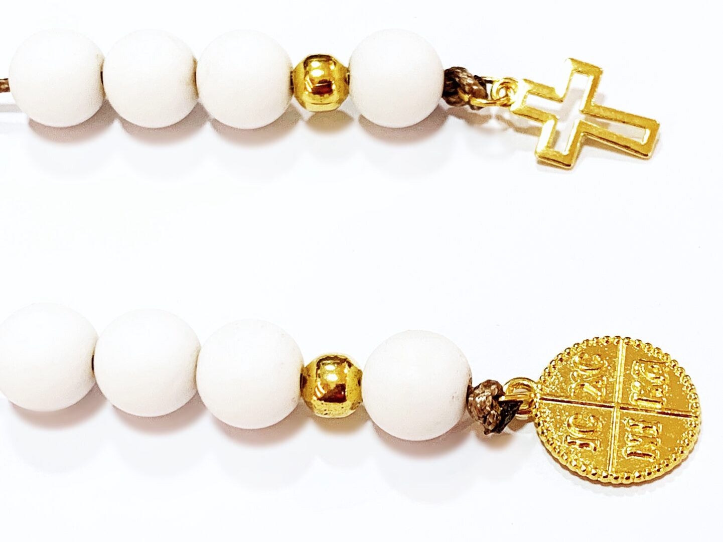 Δεμένο με 8 χάντρες + 2 μεταλλικές χρυσές και χρυσά μεταλλικά στοιχεία στα τελειώματα.