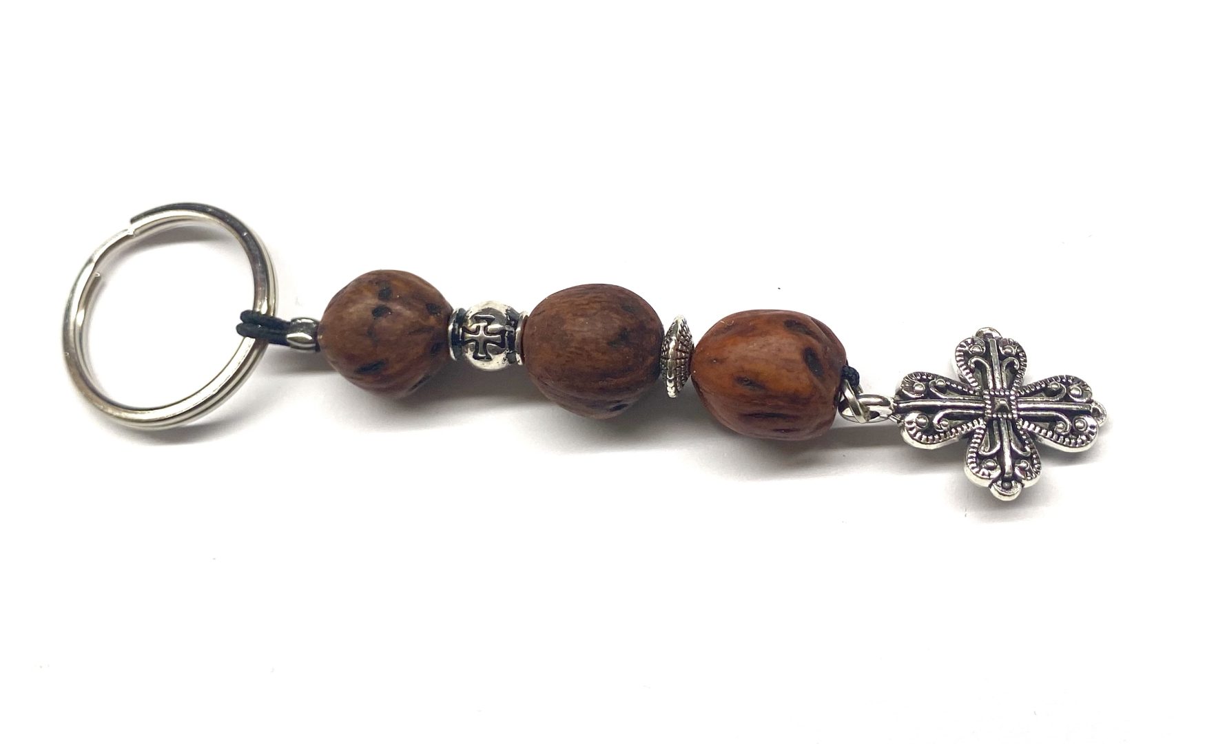 Χειροποίητο μπρελόκ αρωματικό με χάντρες από καρπό μοσχοκάρυδου .