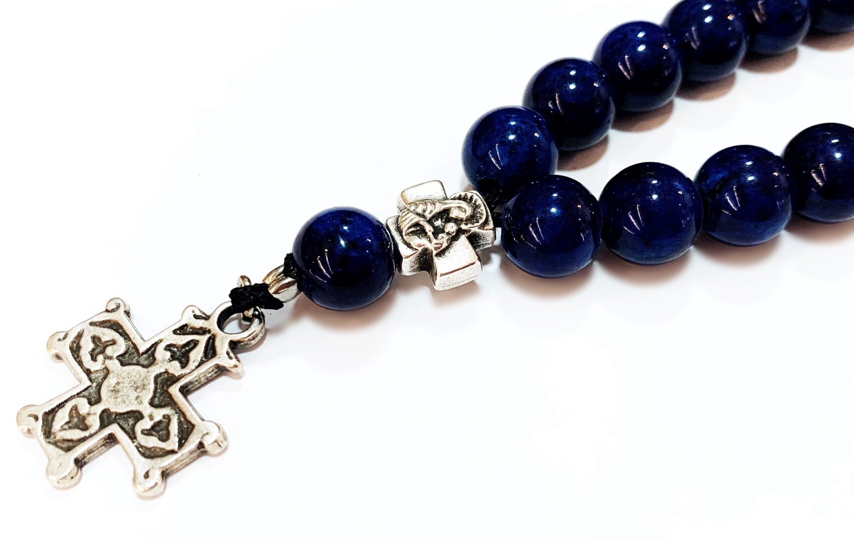 Προσευχητάρι 33 χάντρες από μπλε Αχάτη Βραζιλίας CROS 3