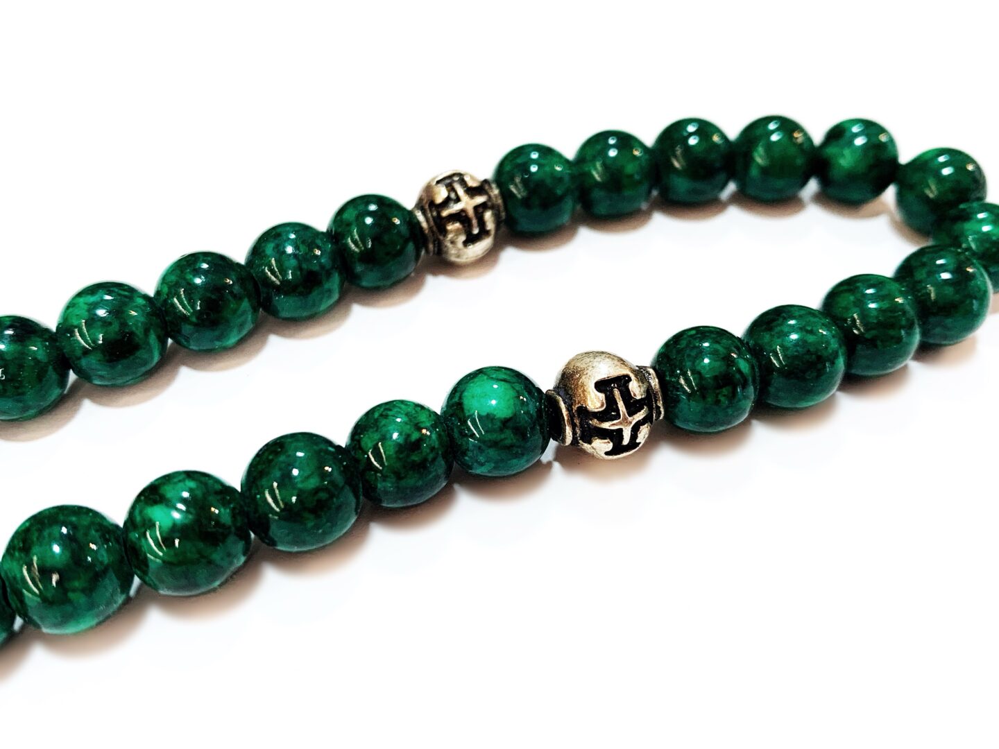 Χειροποίητο προσευχητάρι από ημιπολύτιμο λίθο Νεφρίτη σε πράσινο χρώμα .