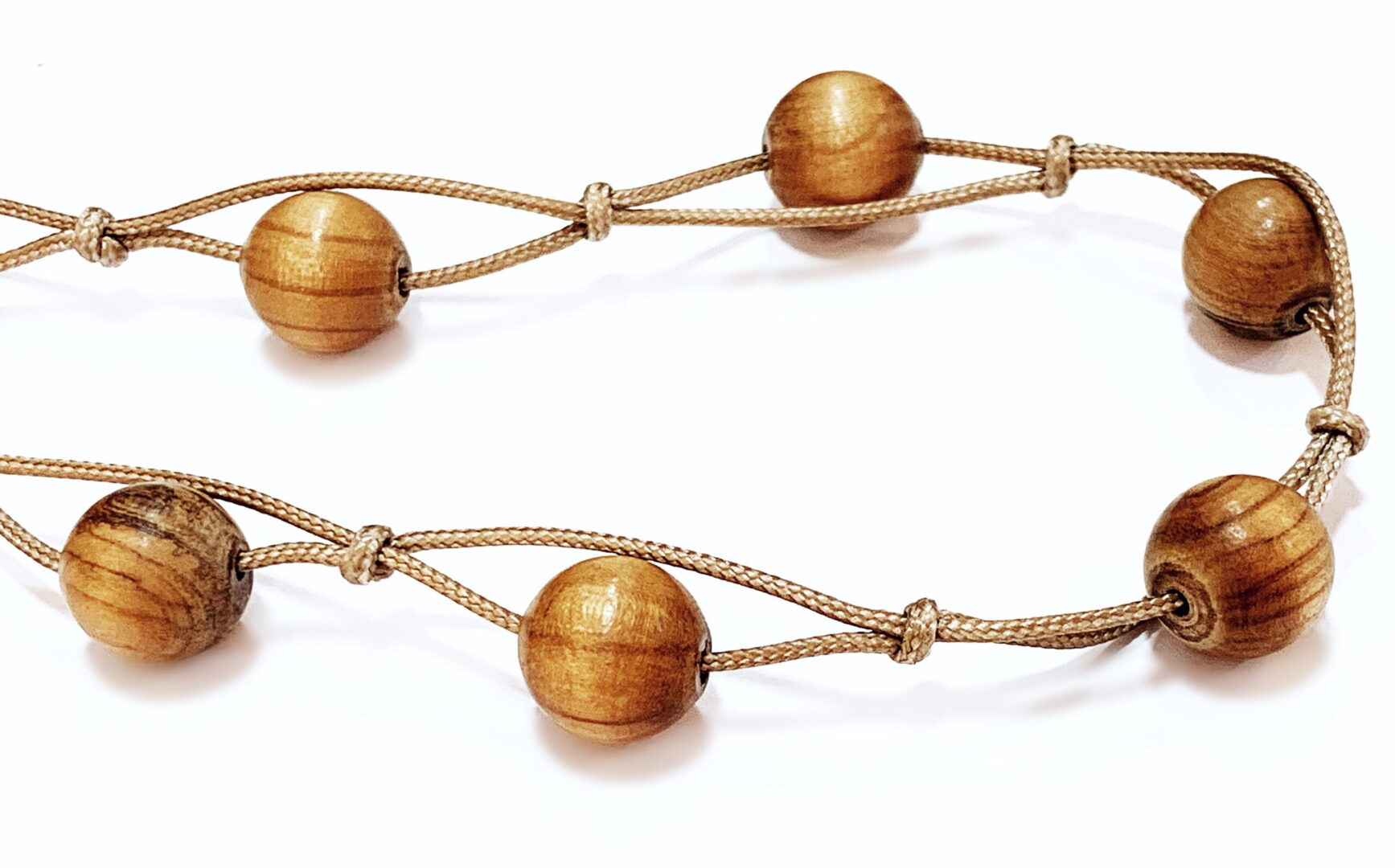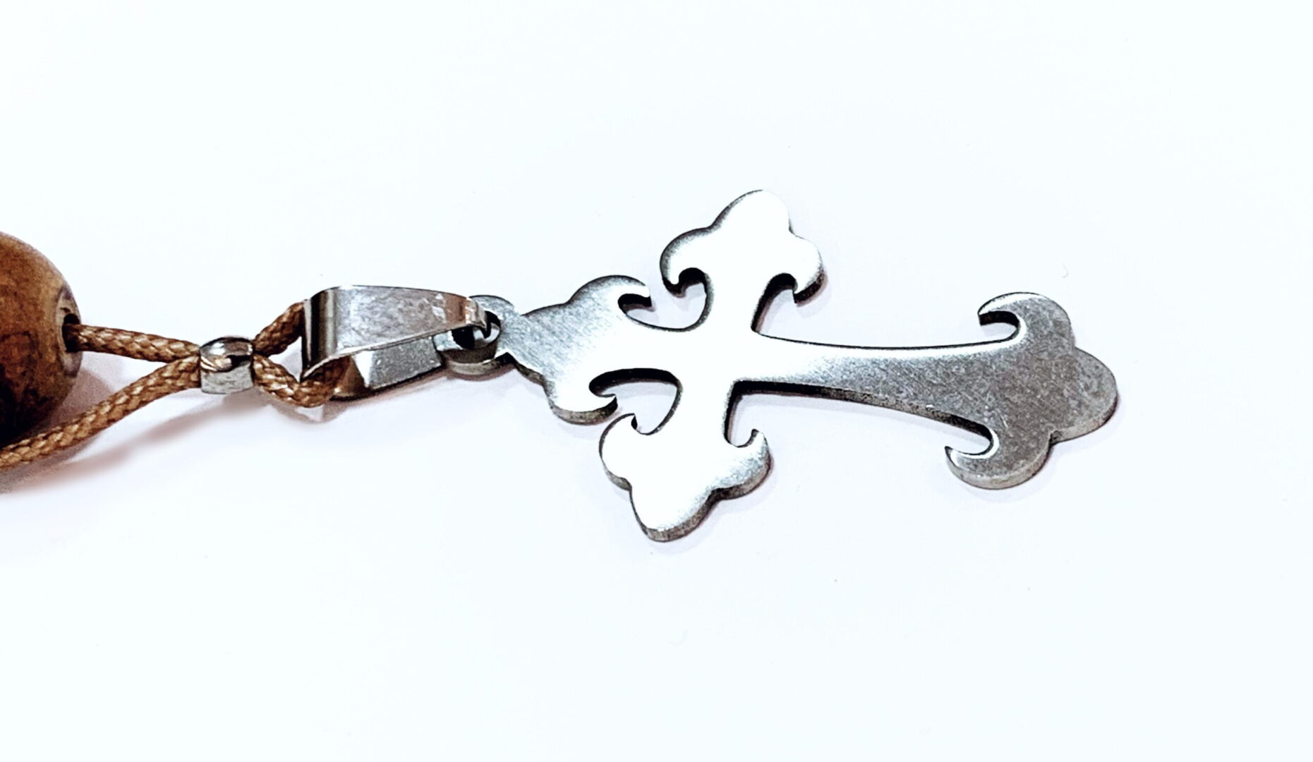 Χειροποίητο ροζάριο λαιμού από ξύλο ελιάς σε στρογγυλό σχήμα στο τελείωμα  φέρει σταυρό από ανοξείδωτο ατσάλι ο οποίος δεν διαβρώνεται.